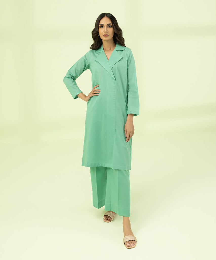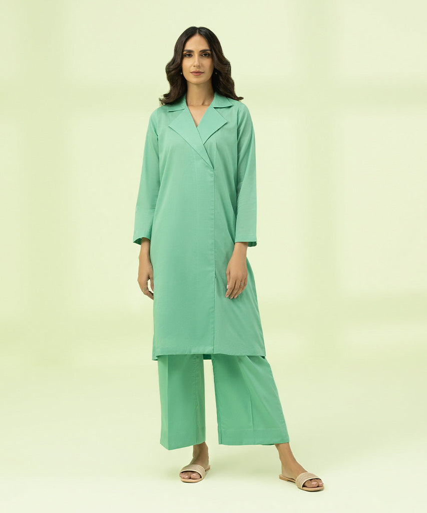 Boxy Shirt Upgrade your wardrobe with refreshing boxy kurta in green with a collar. Details: Plain Front, Plain Back...