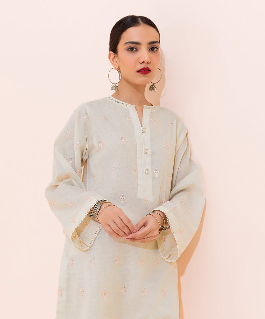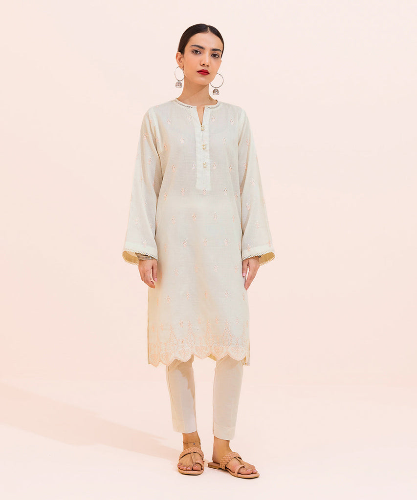 Straight Kurta Elevate your style this summer with our off white dobby straight silhouette featuring wooden buttons. ...