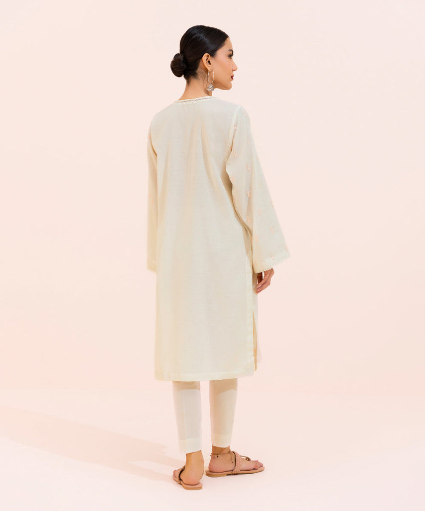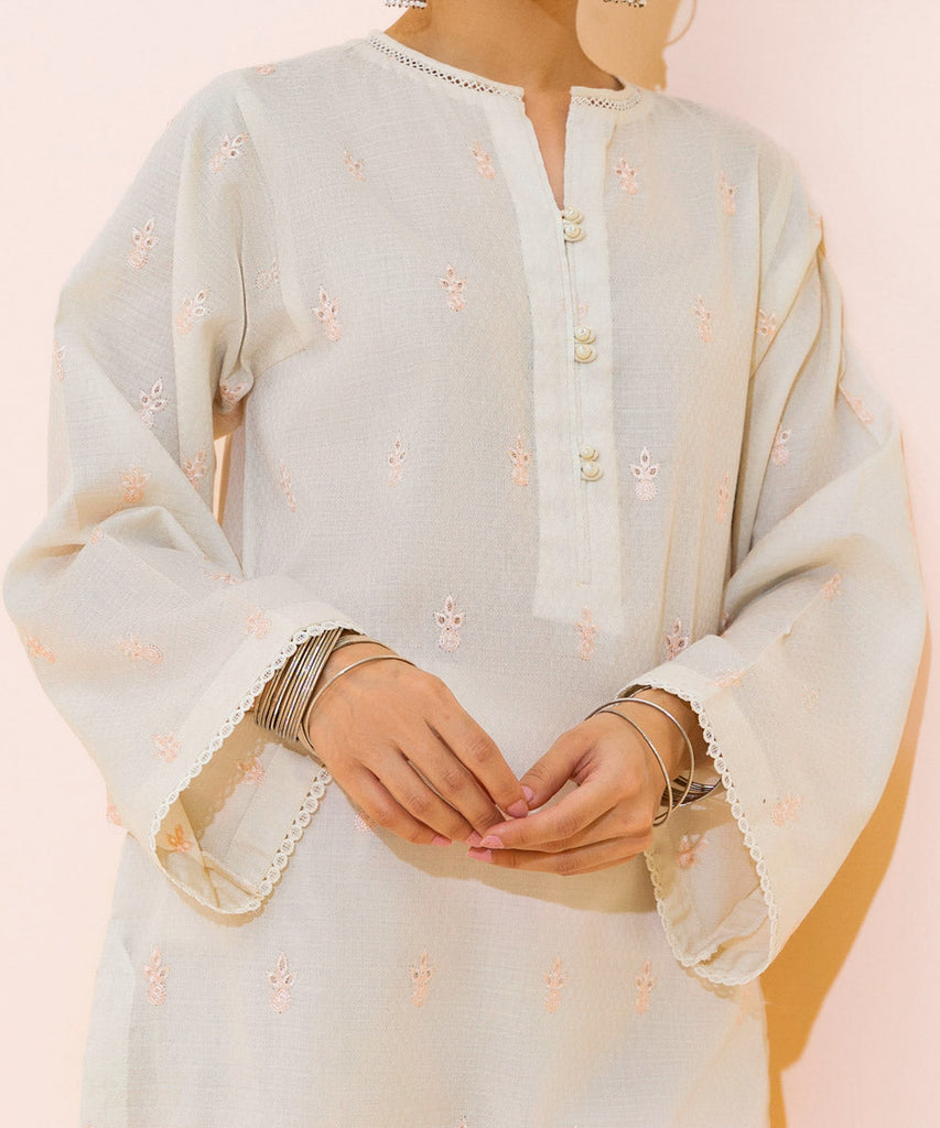 Dyed Embroidered Front, Dyed Plain Back, Full Sleeves, Round Neckline With Slit