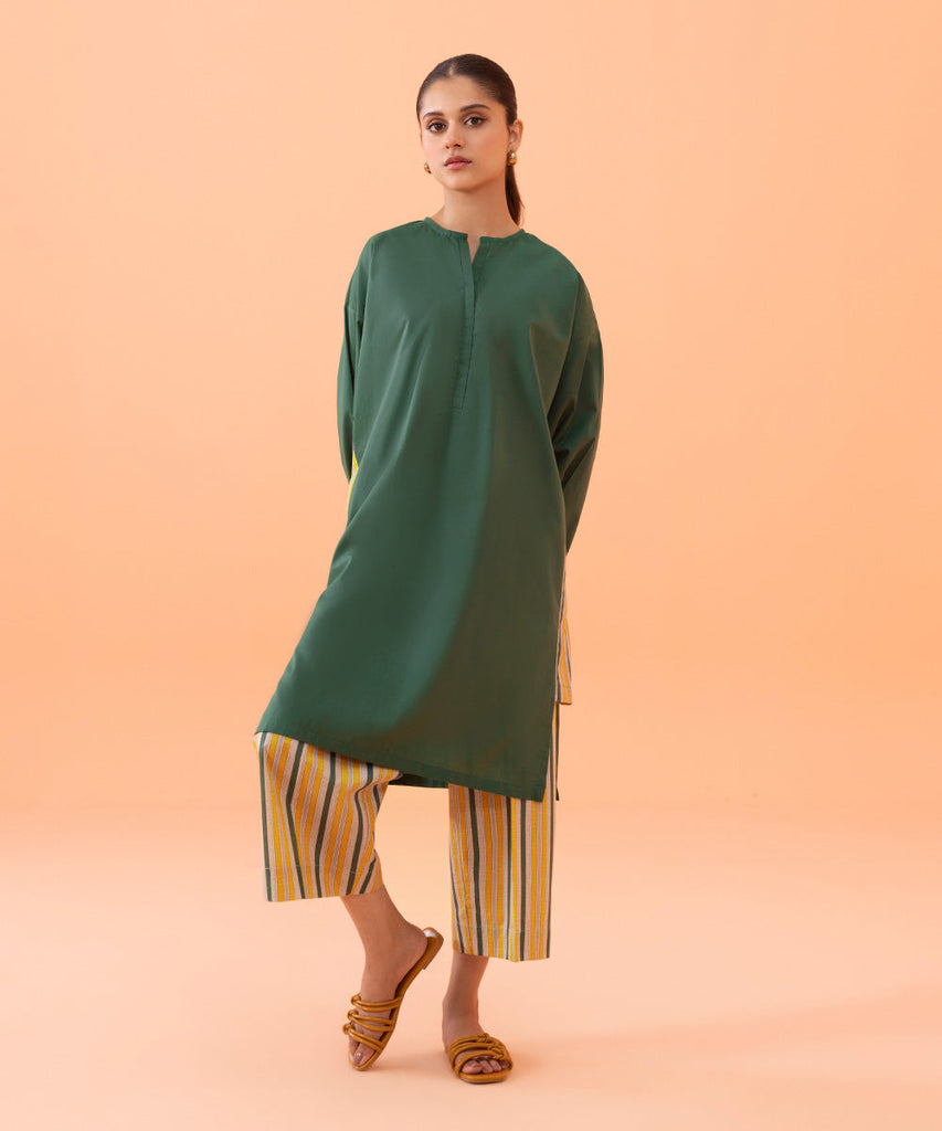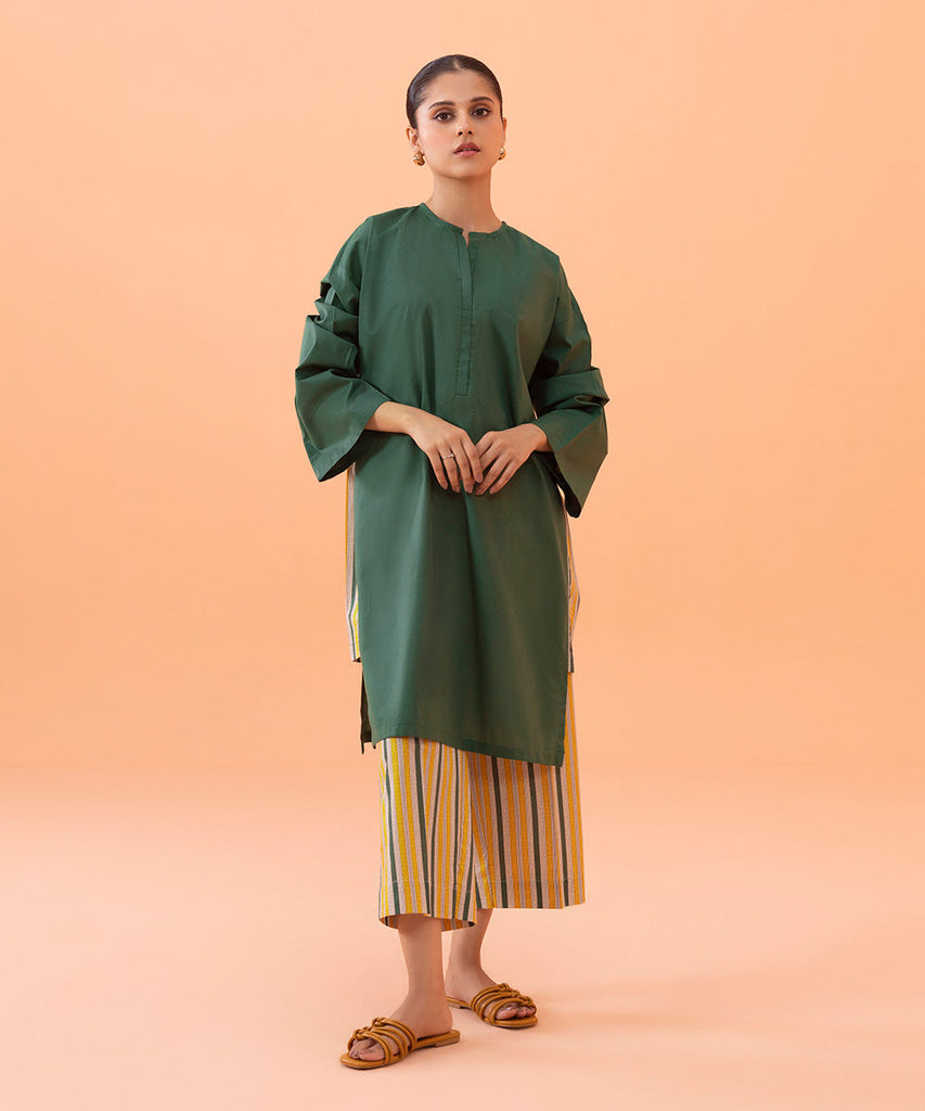 Boxy Shirt Opt for deeper tones with our green boxy kurta this season.