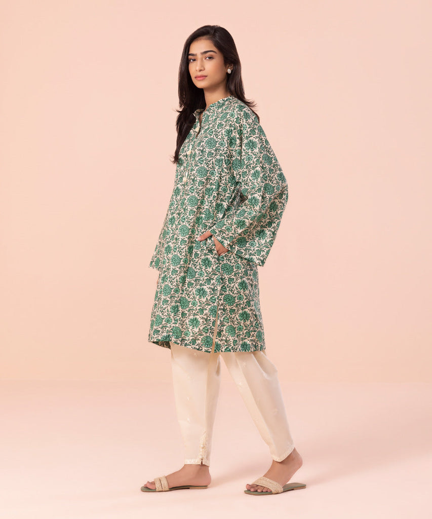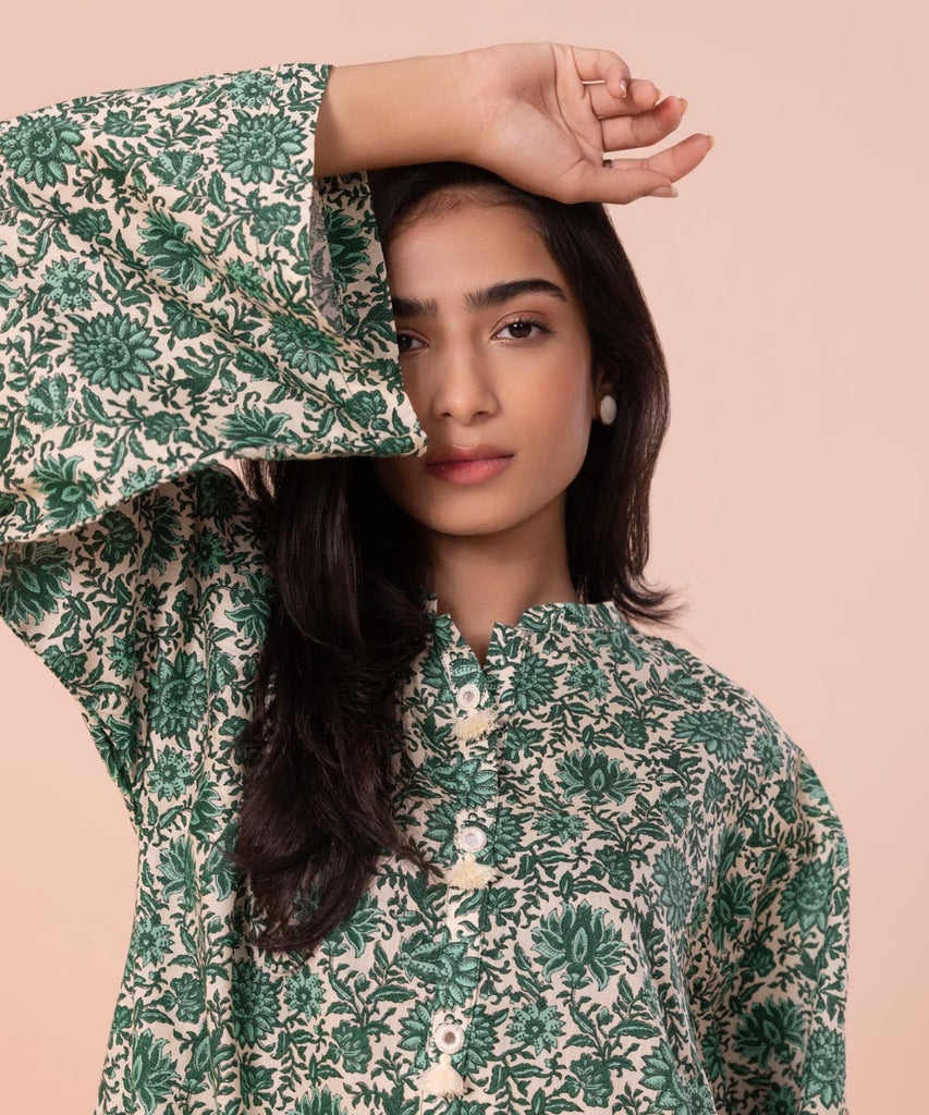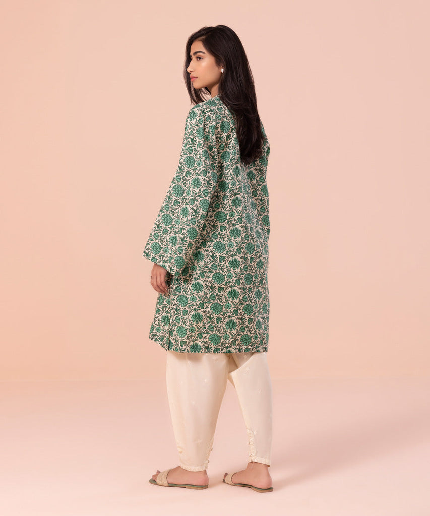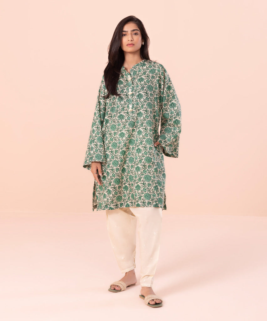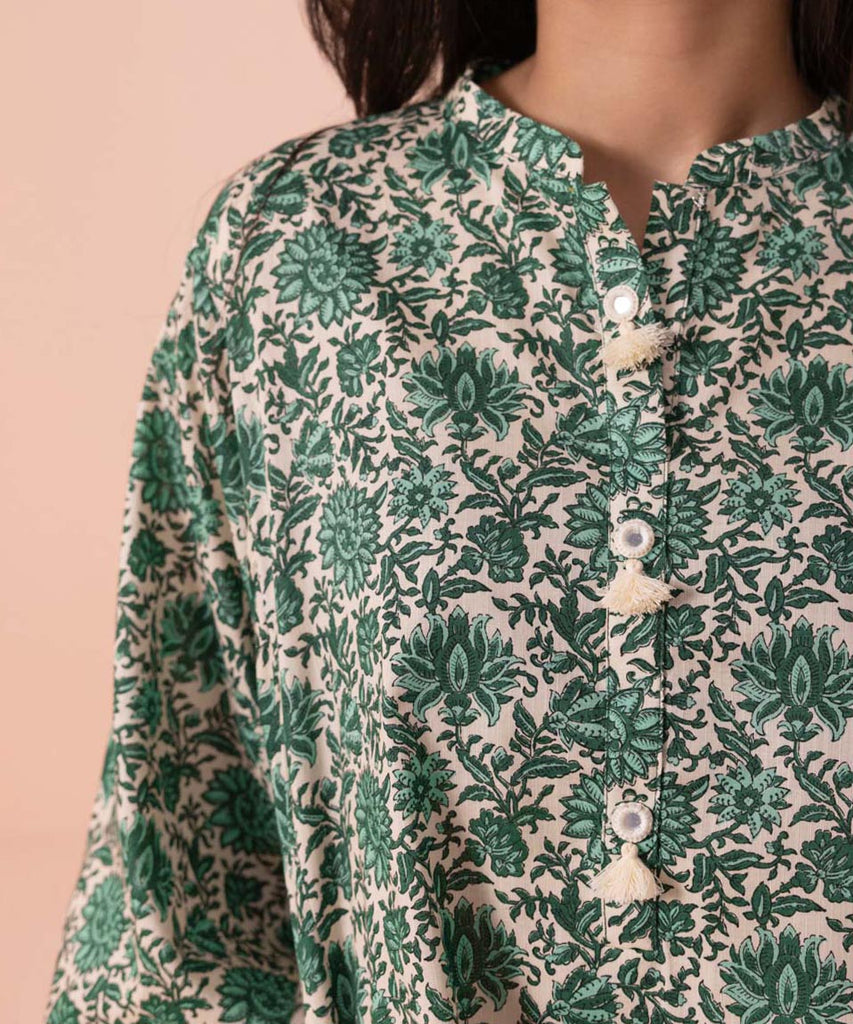 Printed Embroidered Front, Printed Back, Printed Full Sleeves, Band Neckline