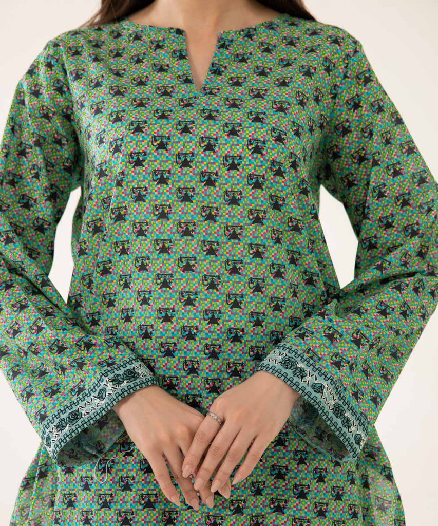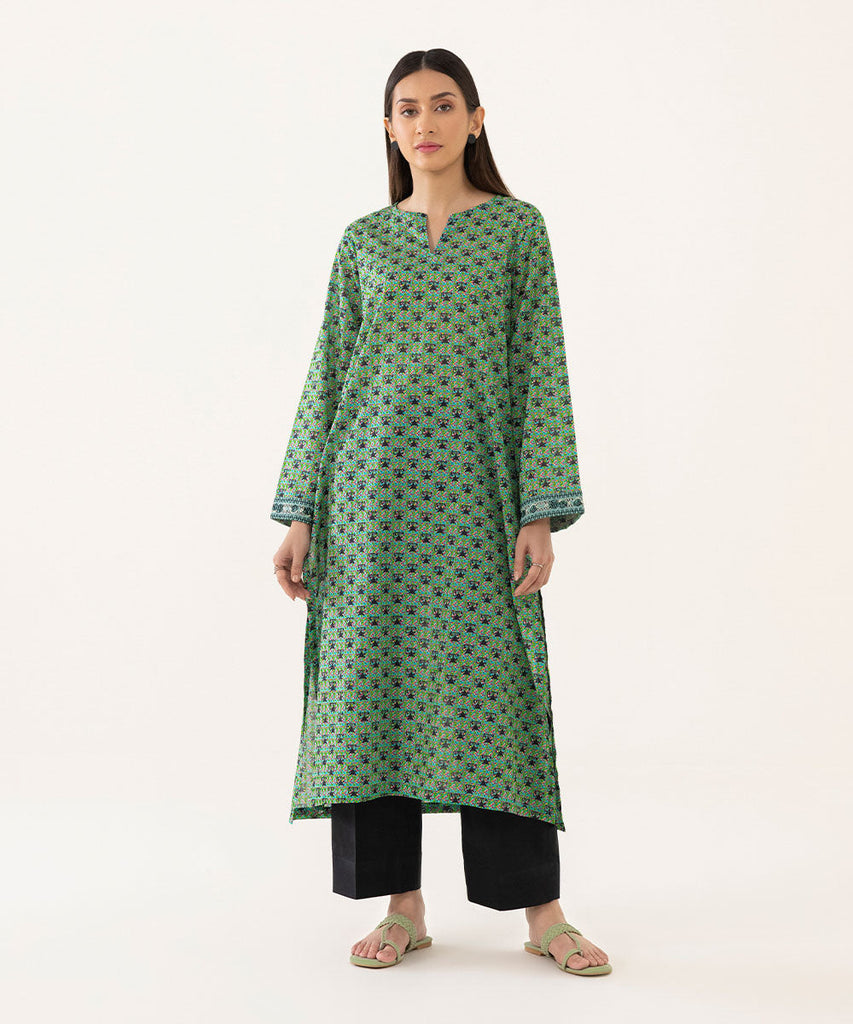 Printed Front, Printed Back, Full Sleeves With Embroidery On Cuff, Crew Neckline With Slit