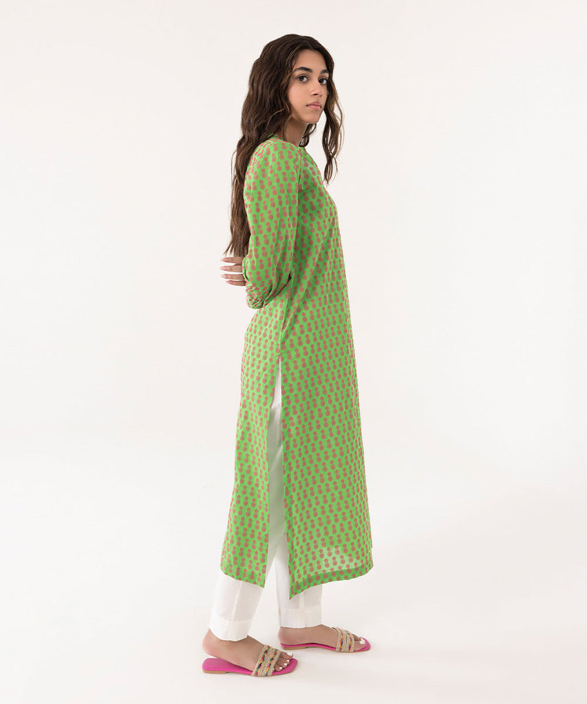 Printed Front, Printed Back, Full Sleeves, Crew Neckline With Slit