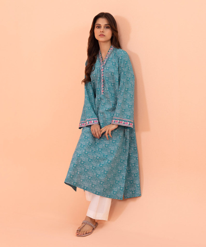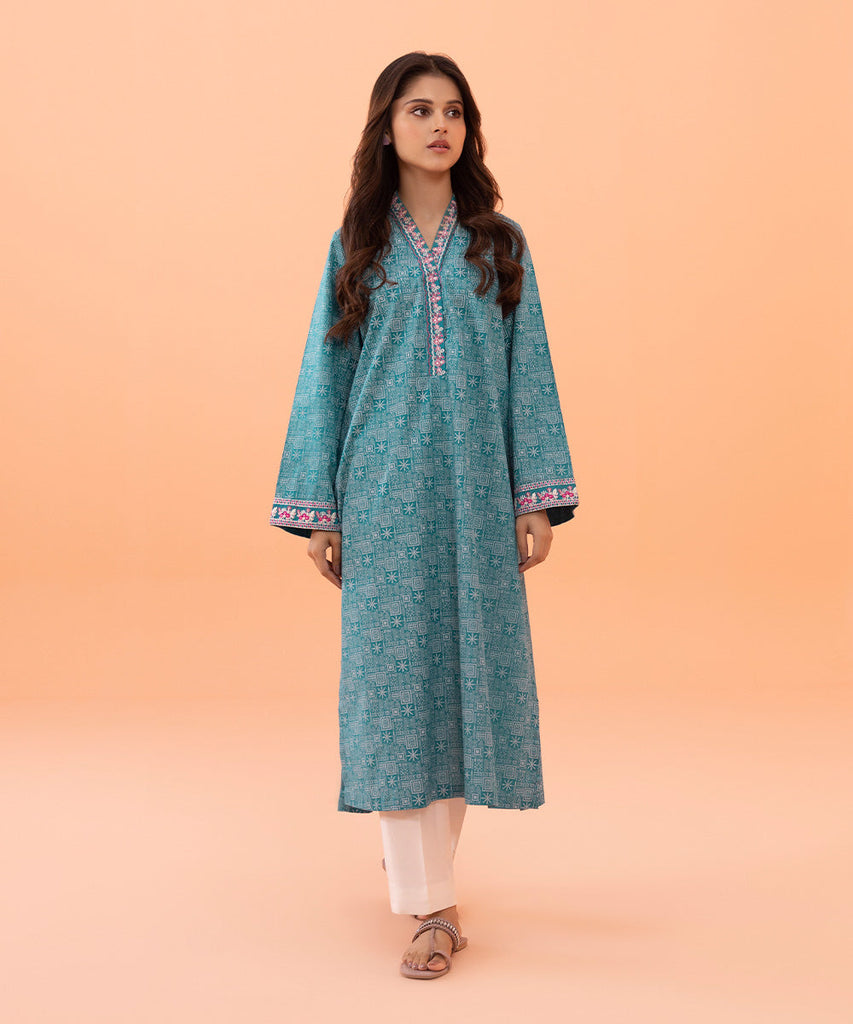 Straight Kurta Our blue straight silhouette features intricate embroidery. Details: Printed Embroidered Front, Print...