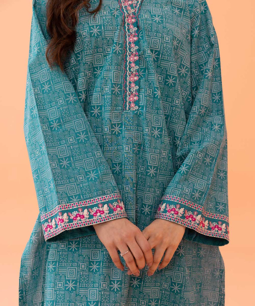 Printed Embroidered Front, Printed Back, Full Printed Embroidered Sleeves, Y Neckline