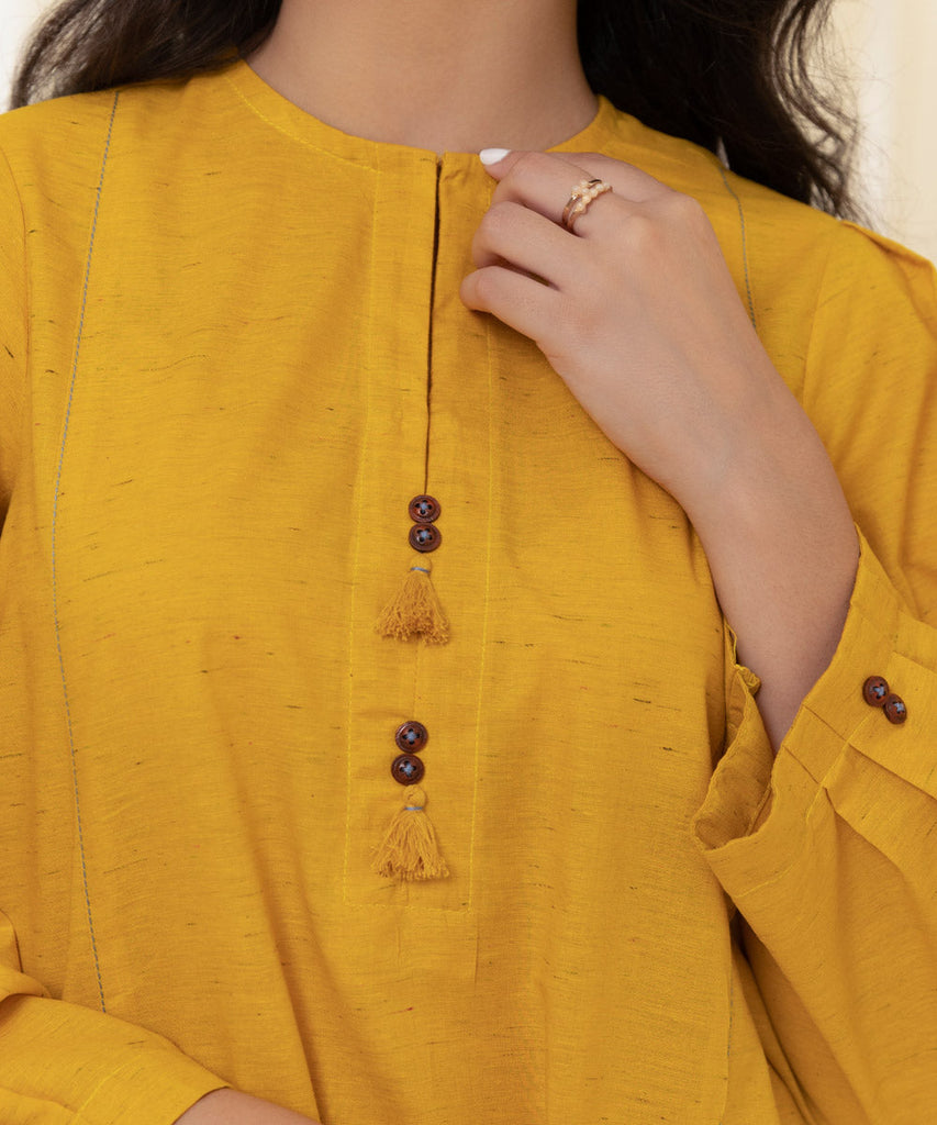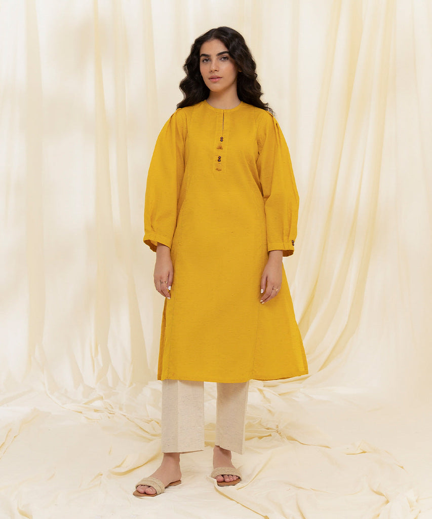 Dyed Front With Beaded Buttons, Dyed Plain Back, Full Sleeves, Round Neckline