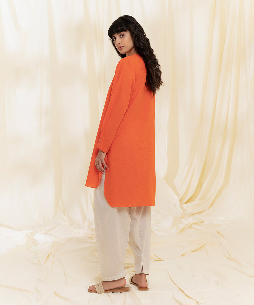 Dyed Front With Wooden Buttons, Dyed Plain Back, Full Sleeves, Round Neckline