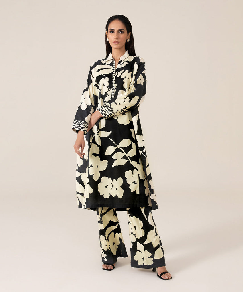 Discover the captivating charm of a monochromatic palette on a breezy lawn fabric seamlessly blending with the captiv...