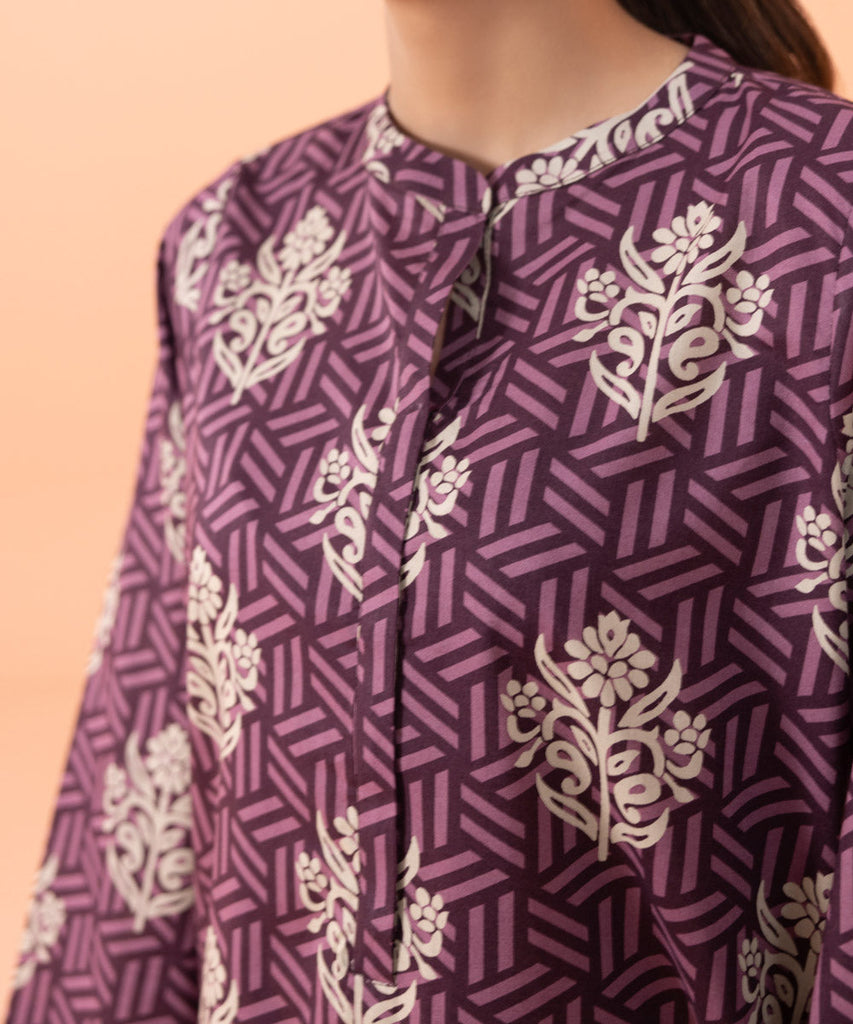 Printed Front, Printed Back, Full Printed Sleeves, Band Neckline With Slit