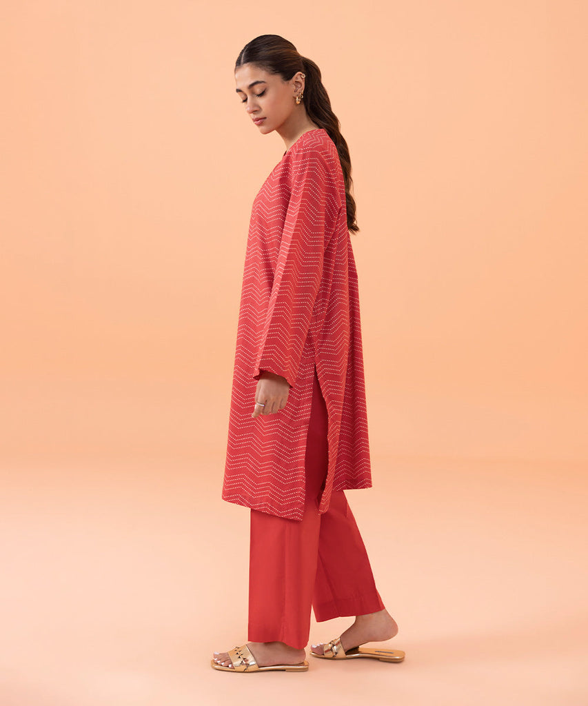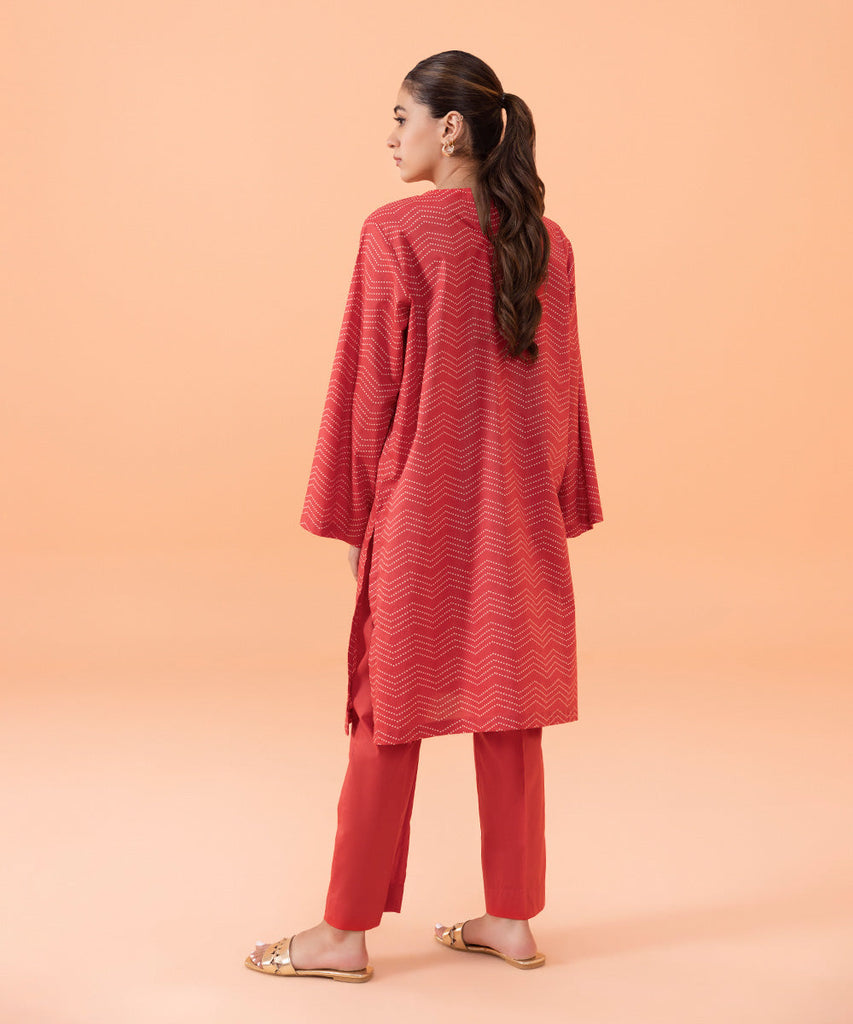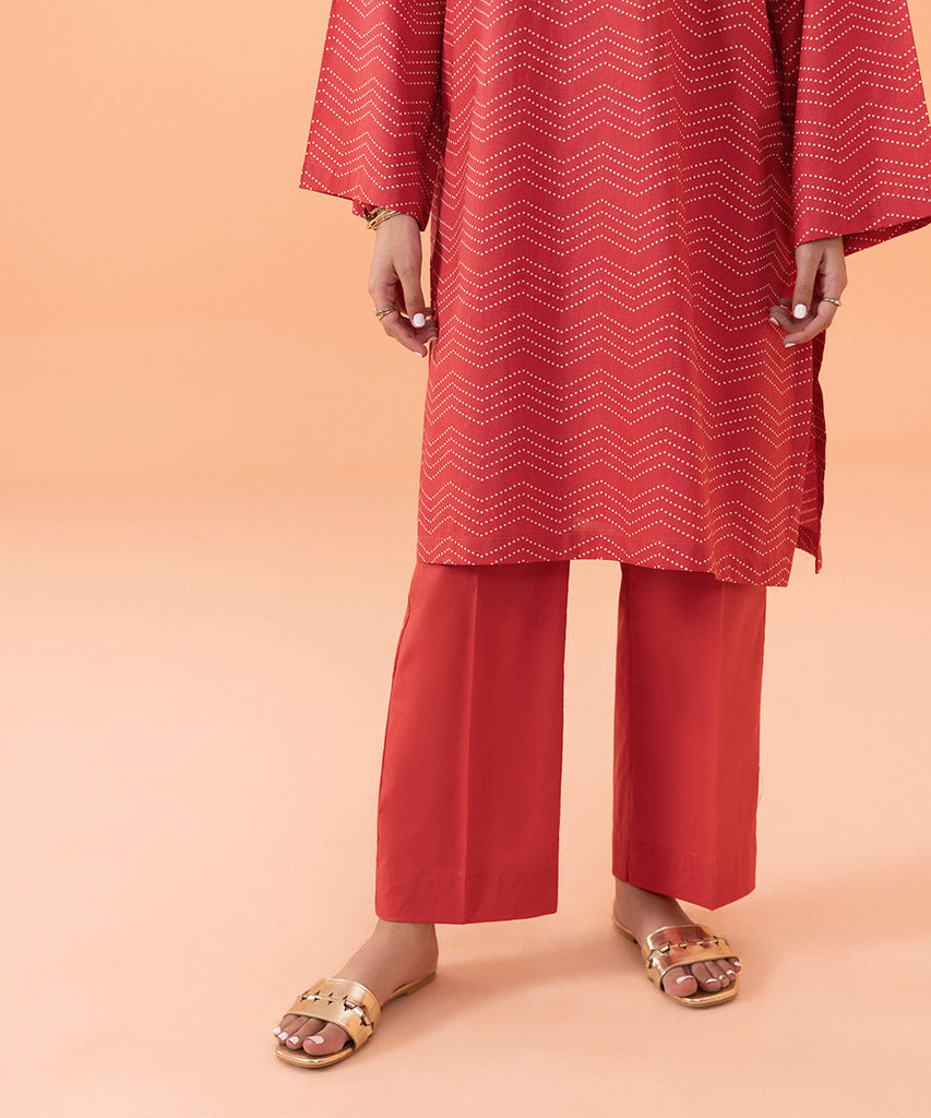 Straight Kurta Uplift your look with our red cambric straight silhouette featuring a round neckline. Details: Printe...