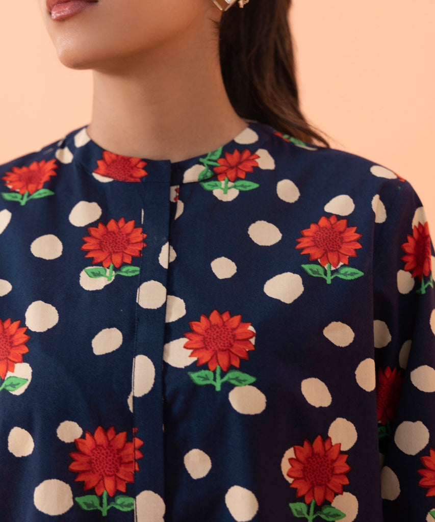 Printed Front, Printed Back, Full Printed Sleeves, Band Neckline With Slit