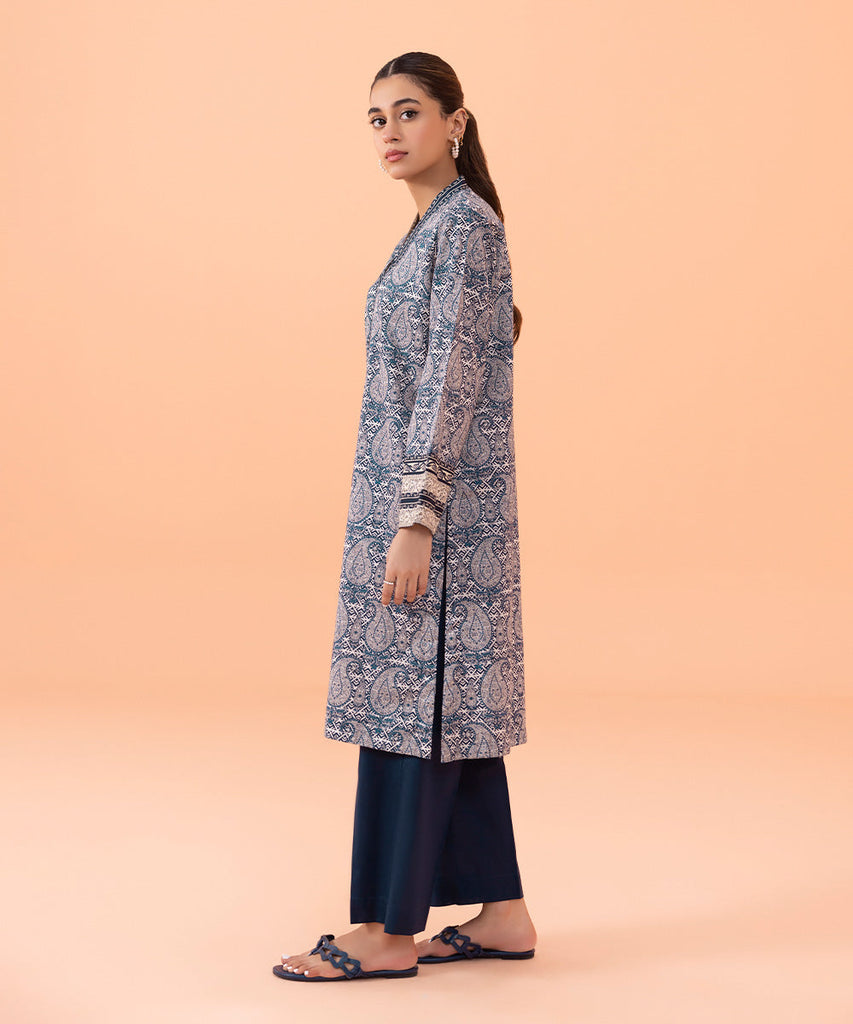 Straight Kurta Refresh your wardrobe with our serene blue straight silhouette. Details: Printed Front, Printed Back,...