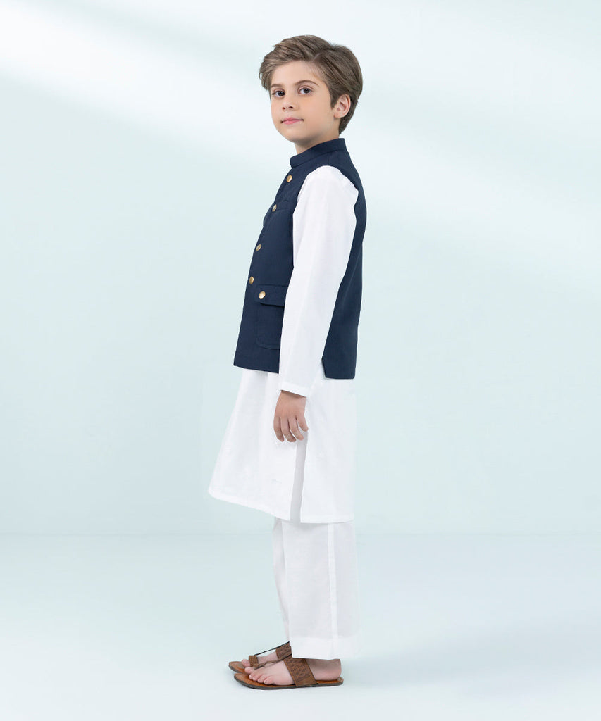 Make a standout statement this season with our blue jacquard waistcoat. Waistcoat Dyed waist coat with front flap poc...