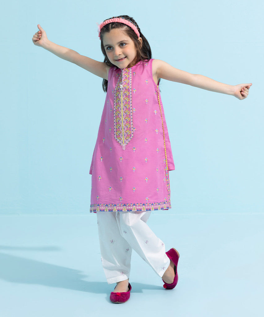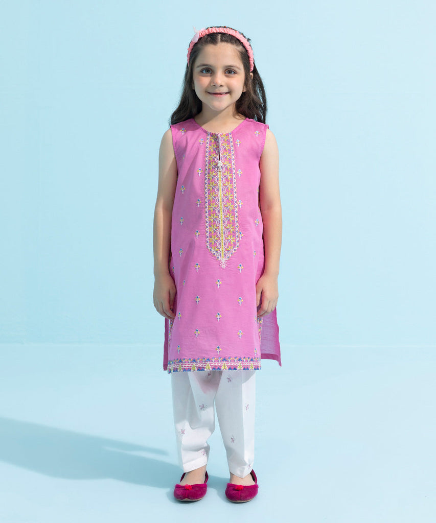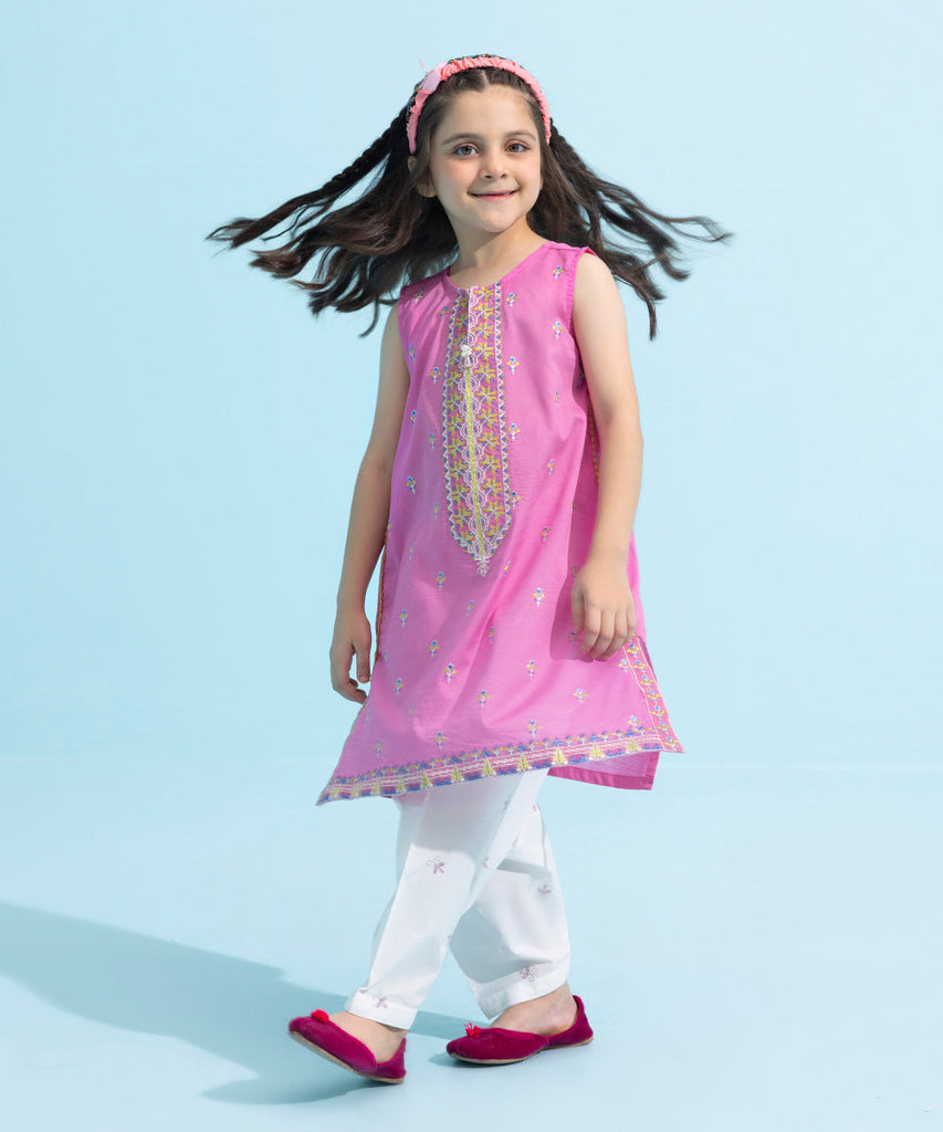 Dress your little one in a refreshing pink A-line silhouette featuring delicate embroidered patterns. A-line ShirtA-L...