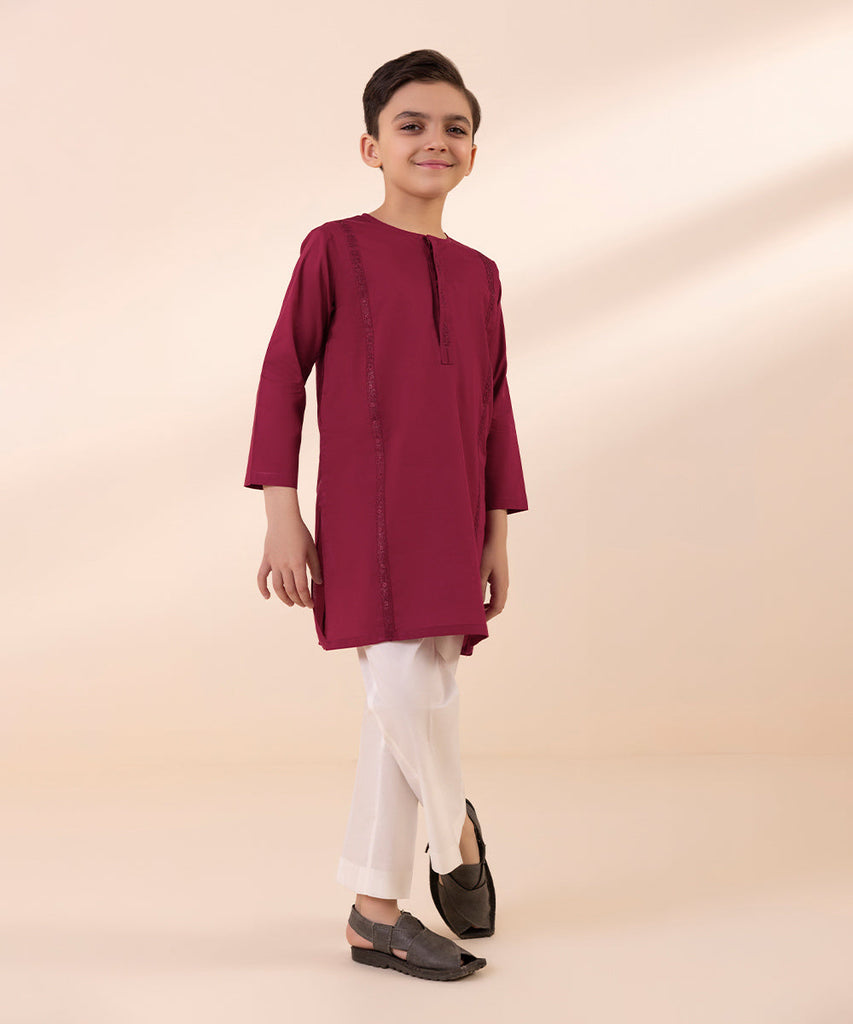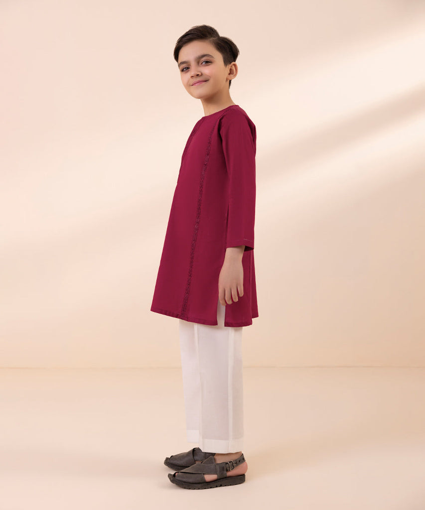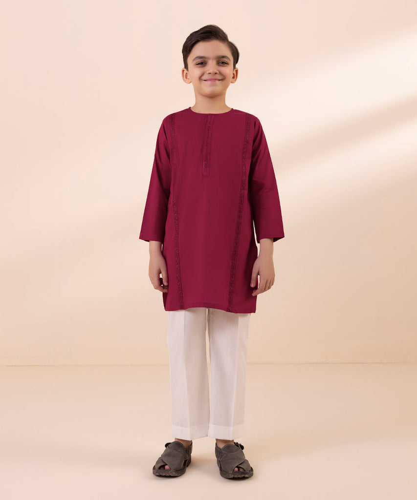 Elevate your little one's style with our maroon all over embroidered kurta.