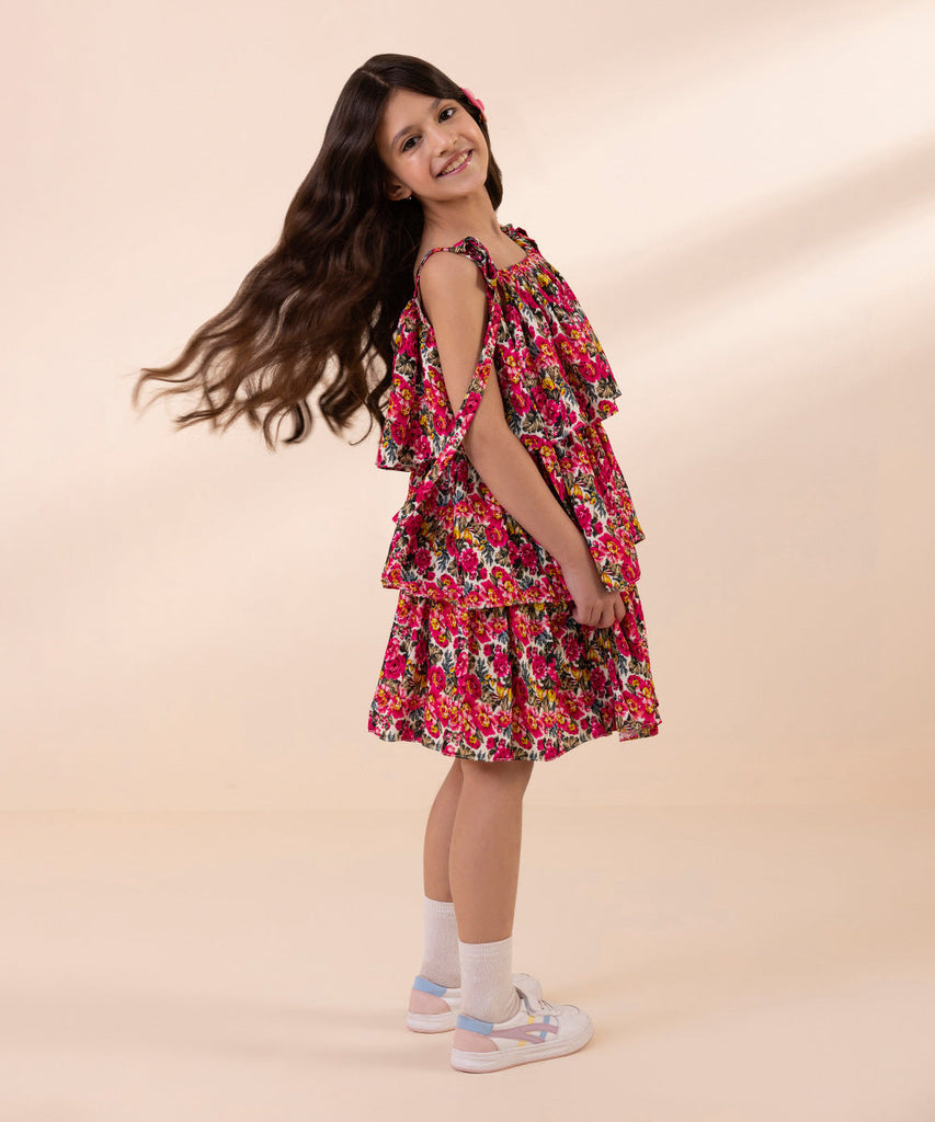 For a playful vibe adorn your little one in our printed flared dress.Tier DressTier Dress, Printed Shirt Colour: Mult...