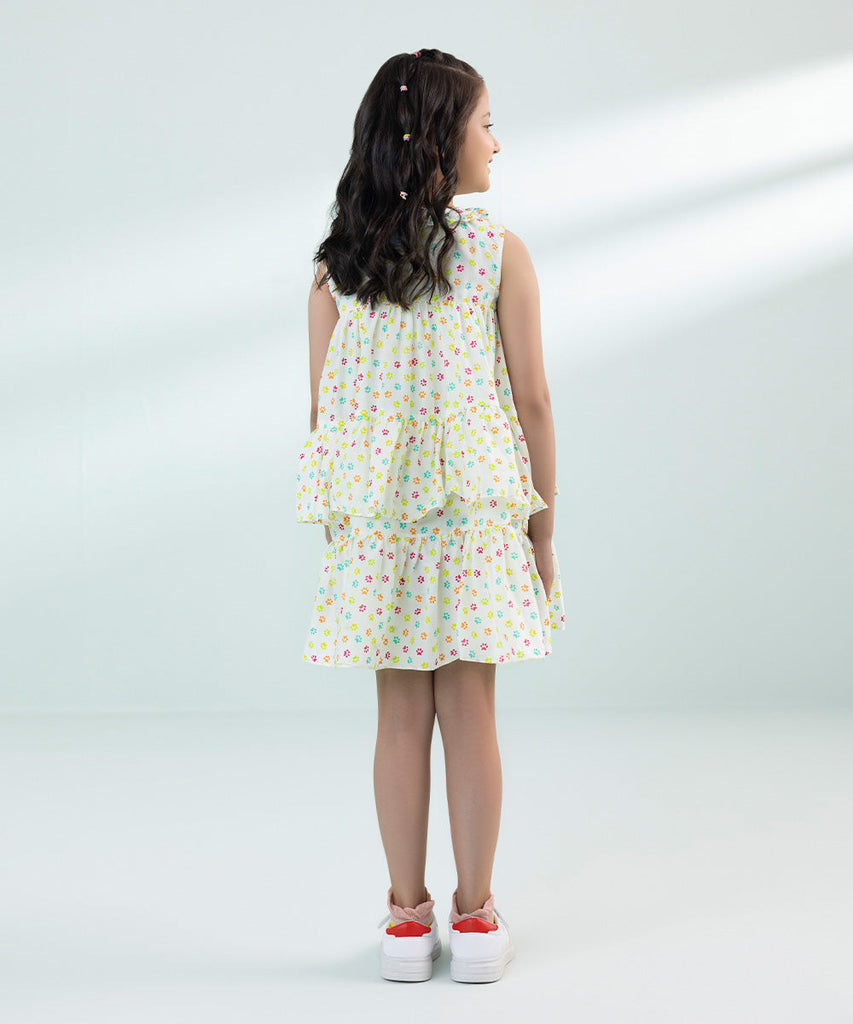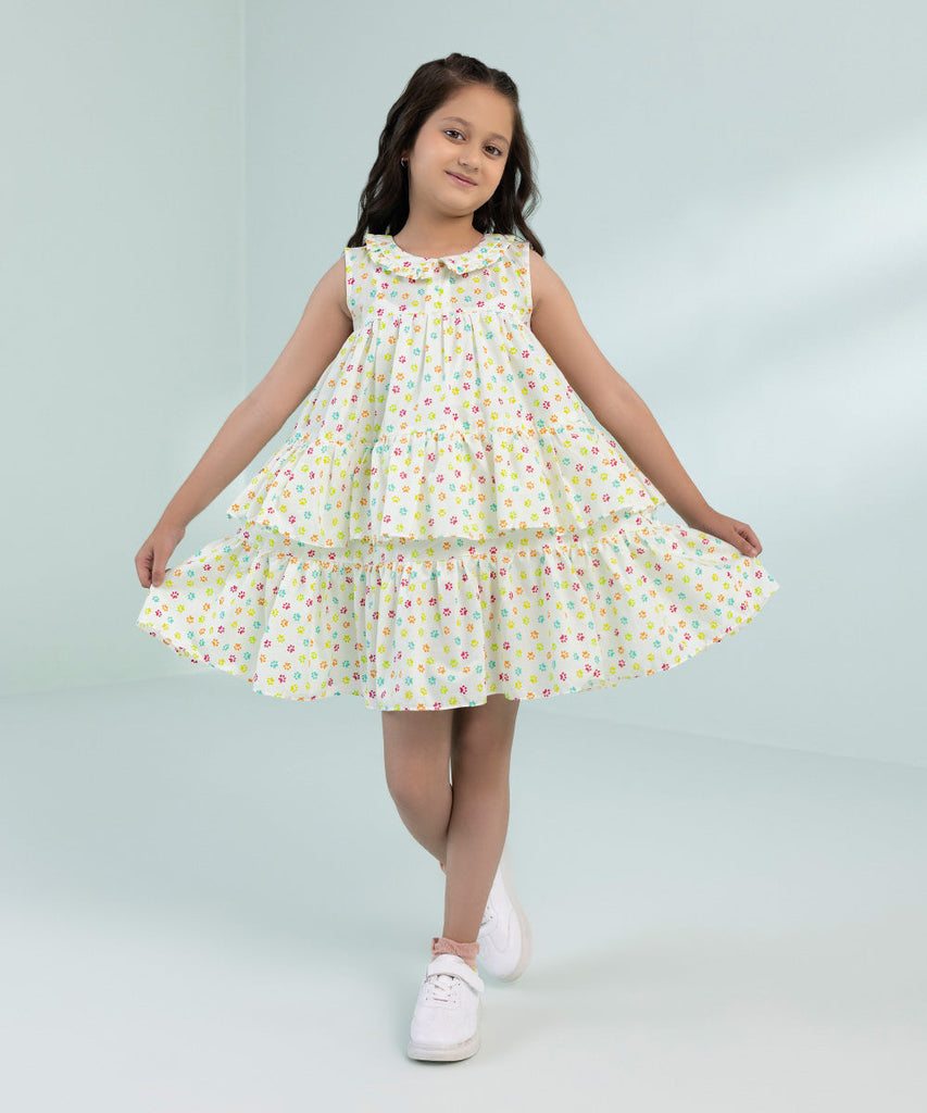 Tiered Dress with peter pan collar detailed with fabric frill, Printed Dress