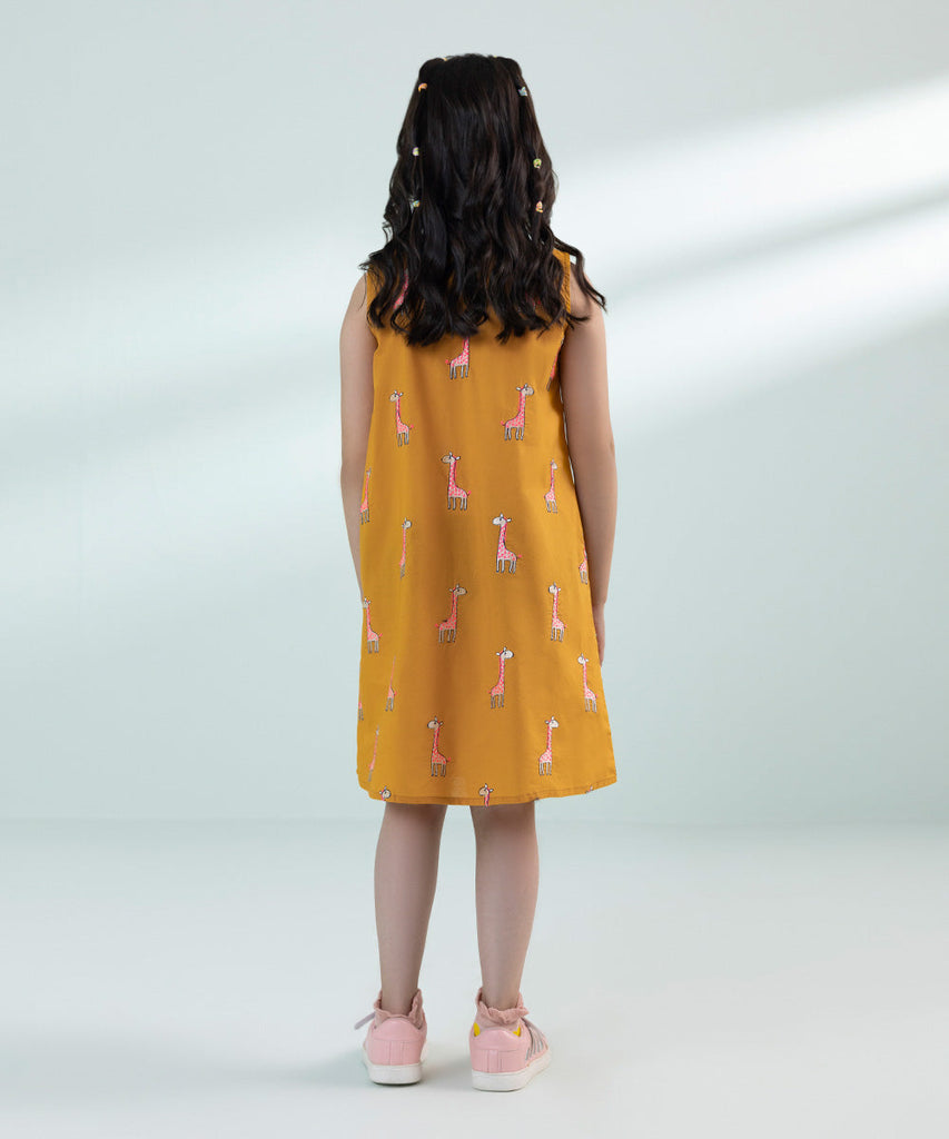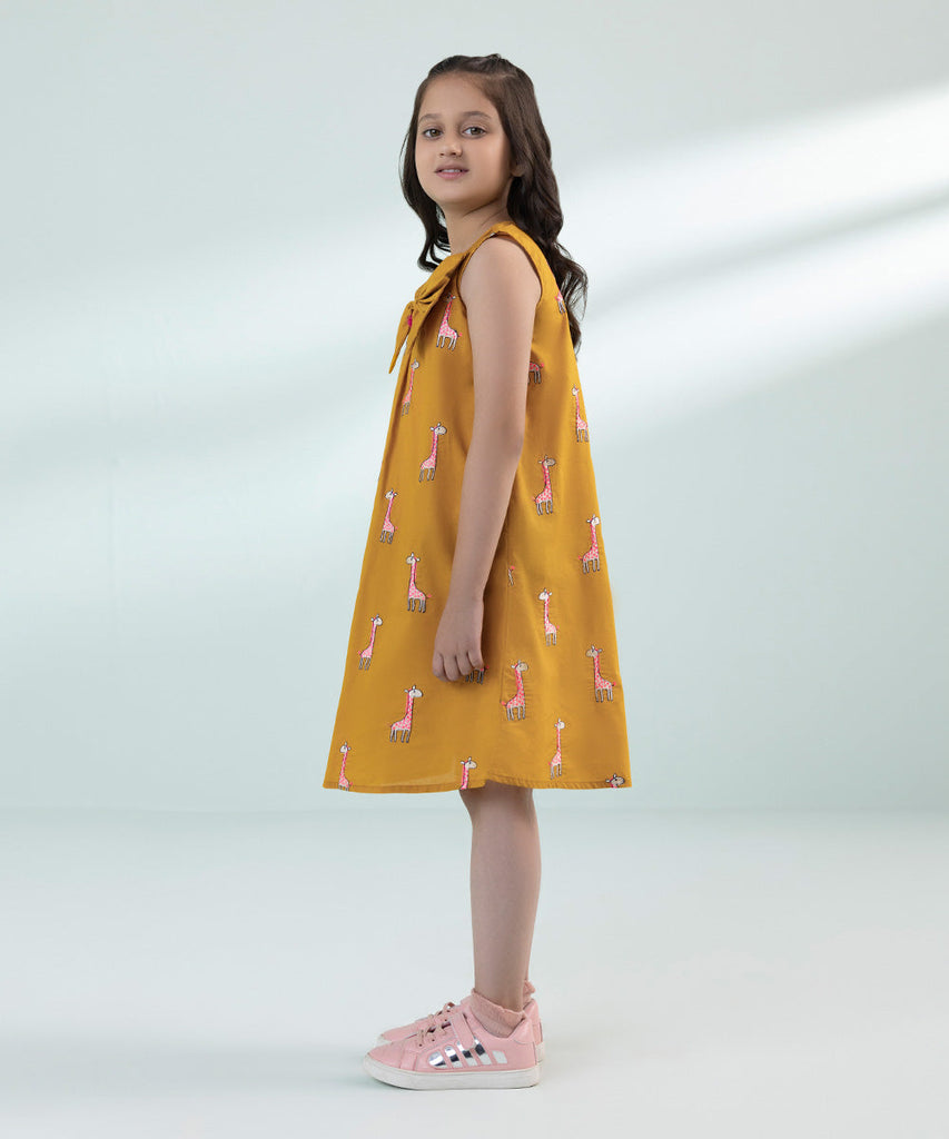 Make your little one stand out with our mustard all-over embroidered A-line dress featuring a fabric bow at the front.