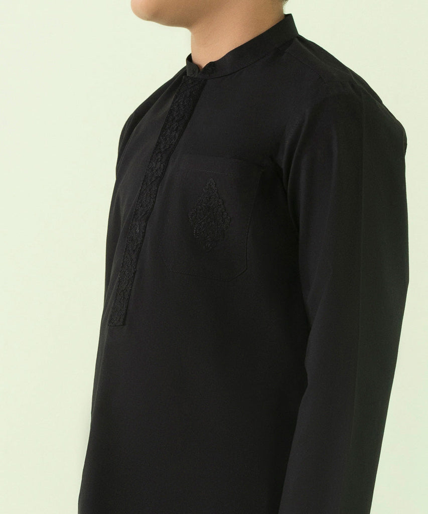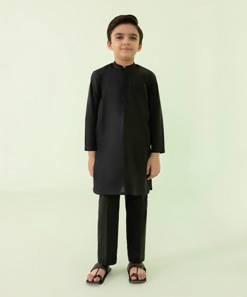 Dress your little one in our slub cambric two-piece suit featuring embroidery on band and pocket. Straight Kurta Str...