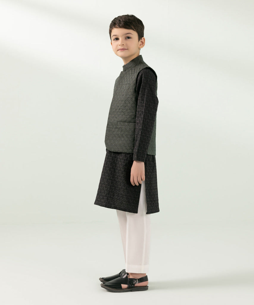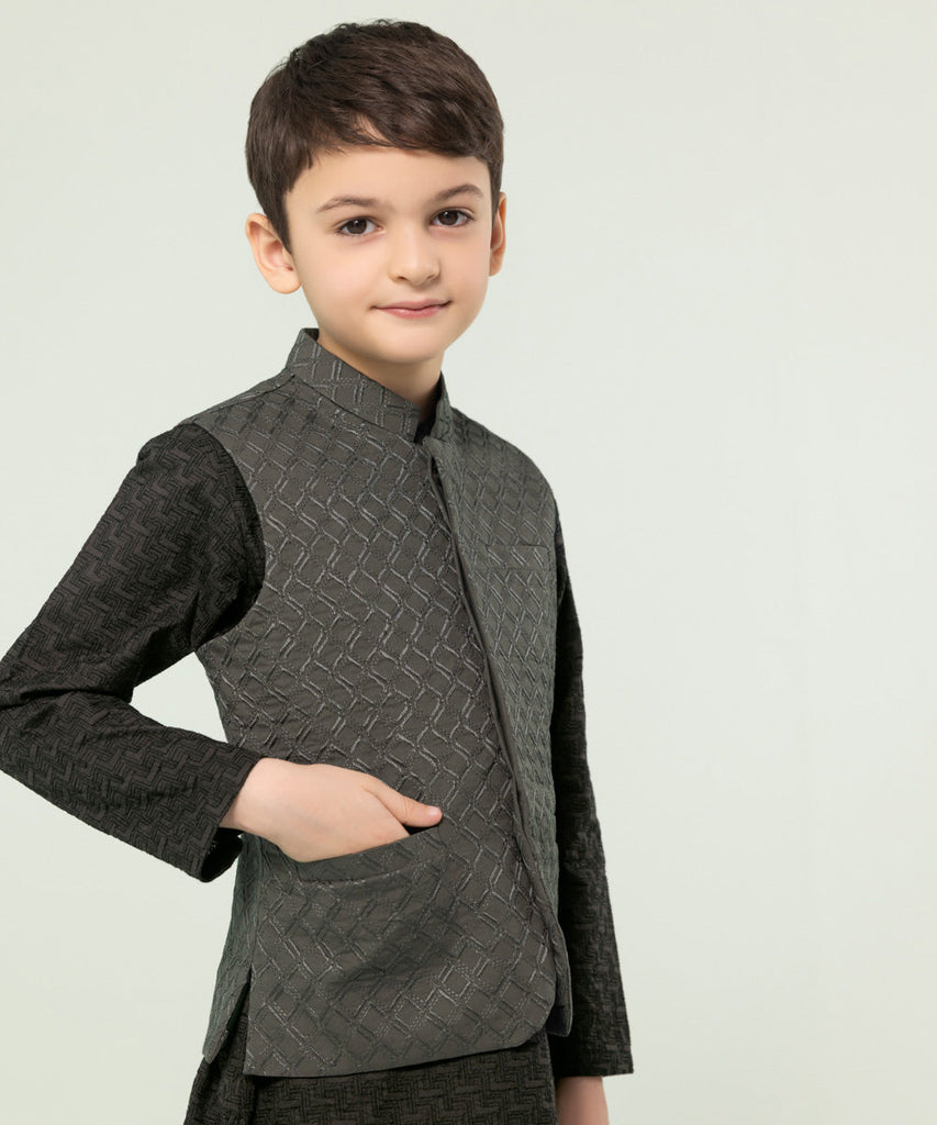 Let your little one make a standout statement with our charcoal embroidered cambric waistcoat.