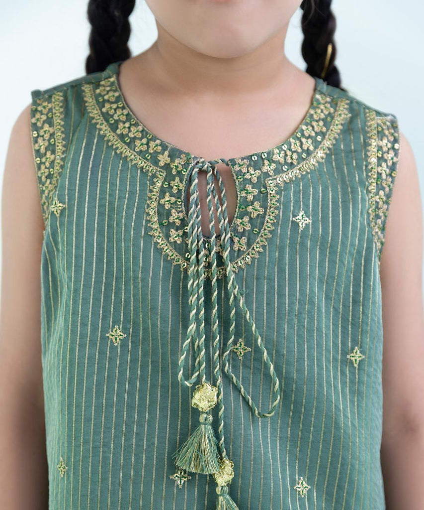 Curate the perfect festive look with our three-piece embroidered organza suit featuring a straight green shirt paired...