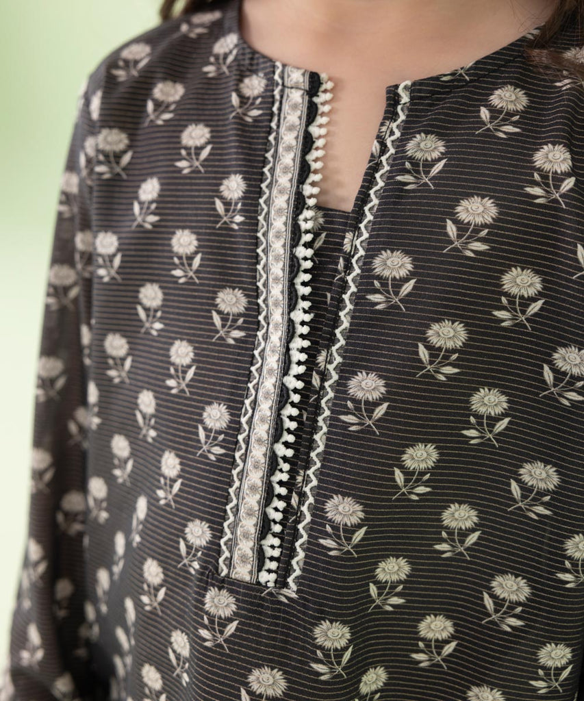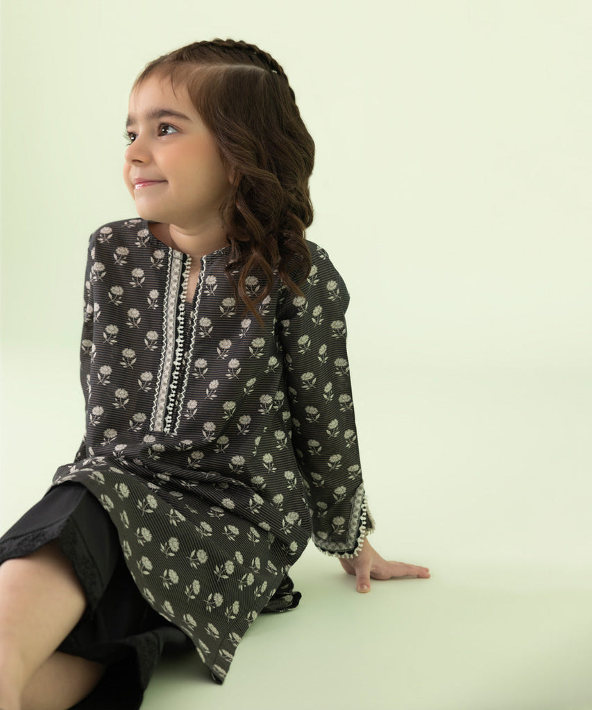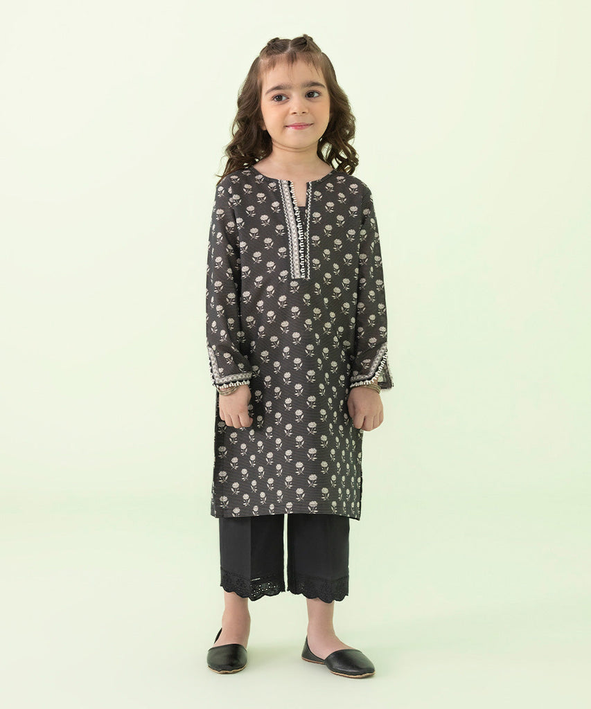 Dress your princess in our straight shirt featuring stitching and lace details paired with embroidered culottes.
