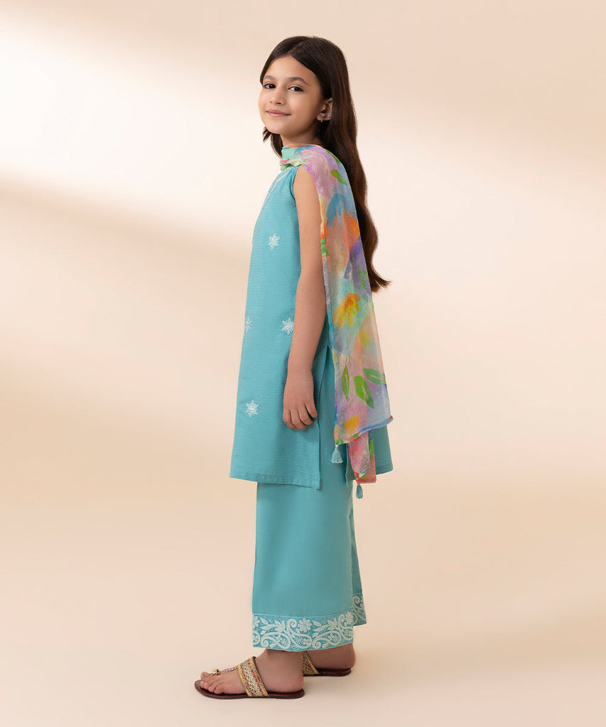 Let your little girl stand out in our embroidered A-line Chikankari shirt paired with embroidered culottes.Straight S...