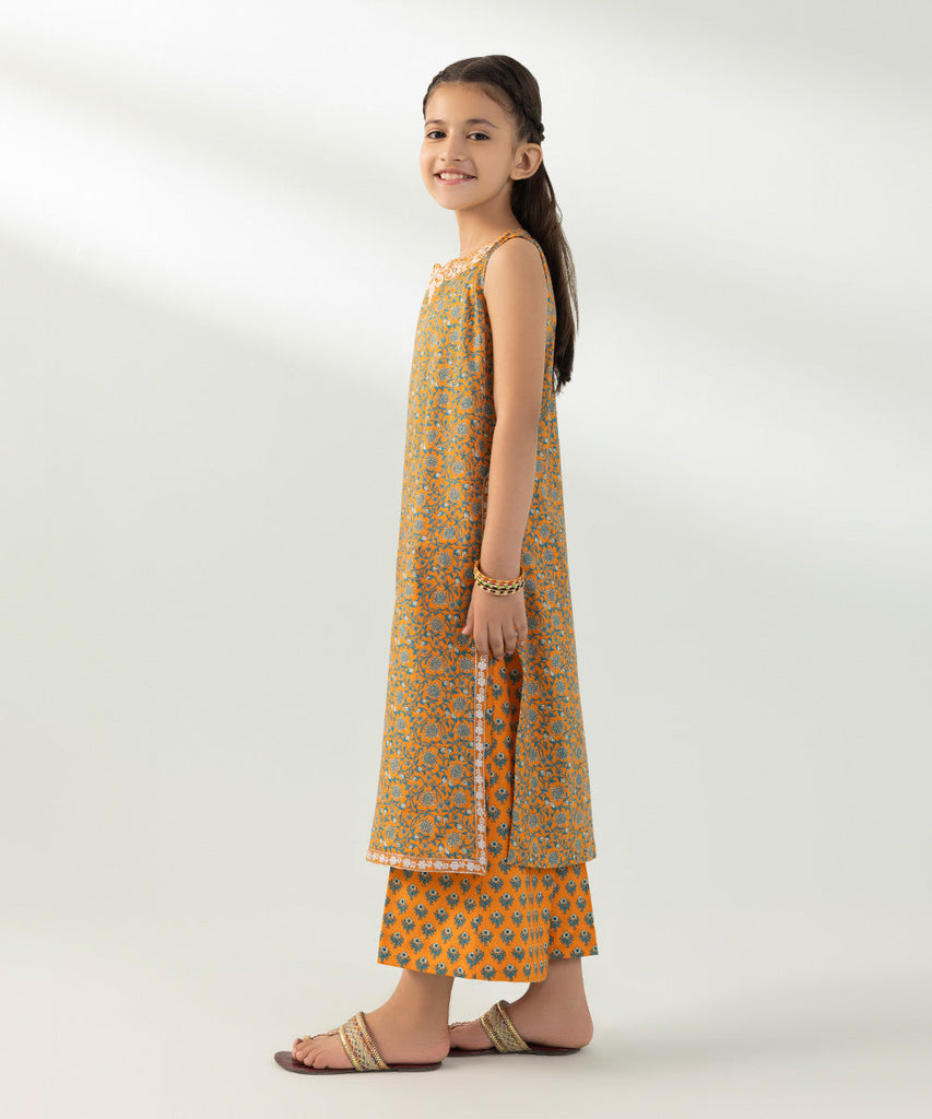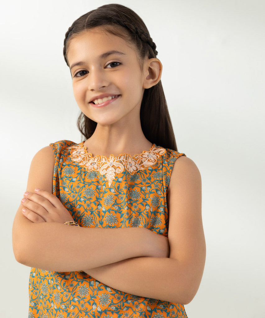 Make an adorable festive statement with our orange embroidered straight long shirt paired with flared cambric pants.S...