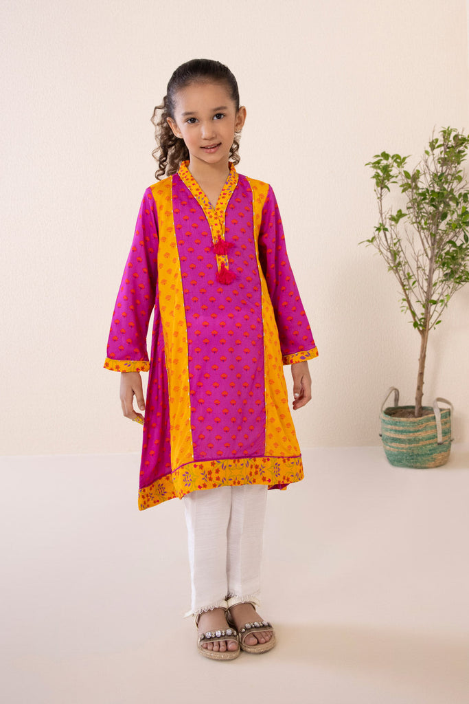 Paneled Frock Adorn your little princess in bright hues of purple and yellow with this printed paneled frock featurin...
