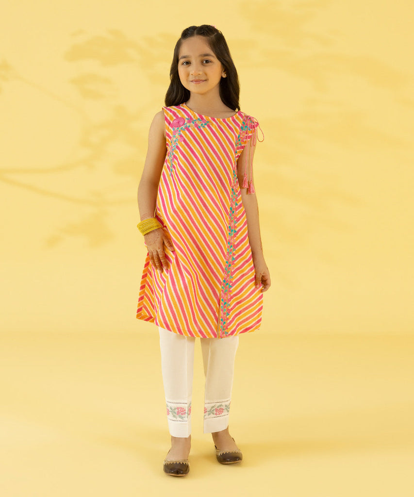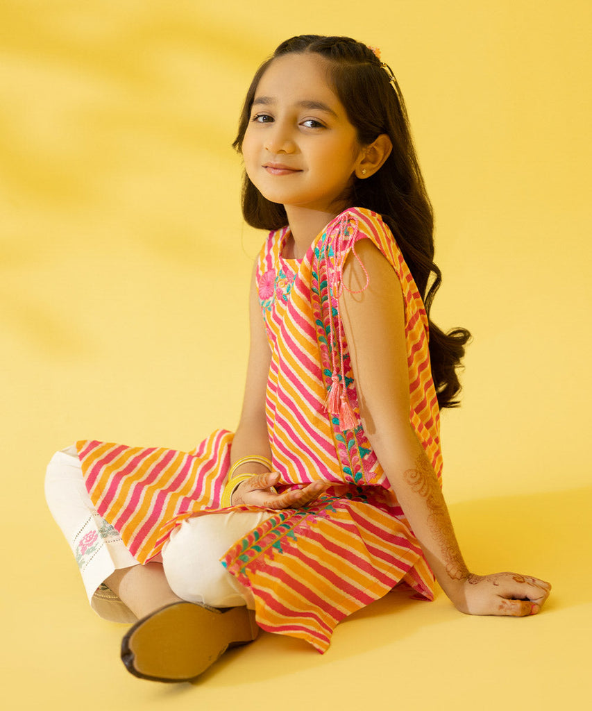 Let your little one shine in our pink and yellow striped A-line accented with embroidery patterns.A Line ShirtPrinted...