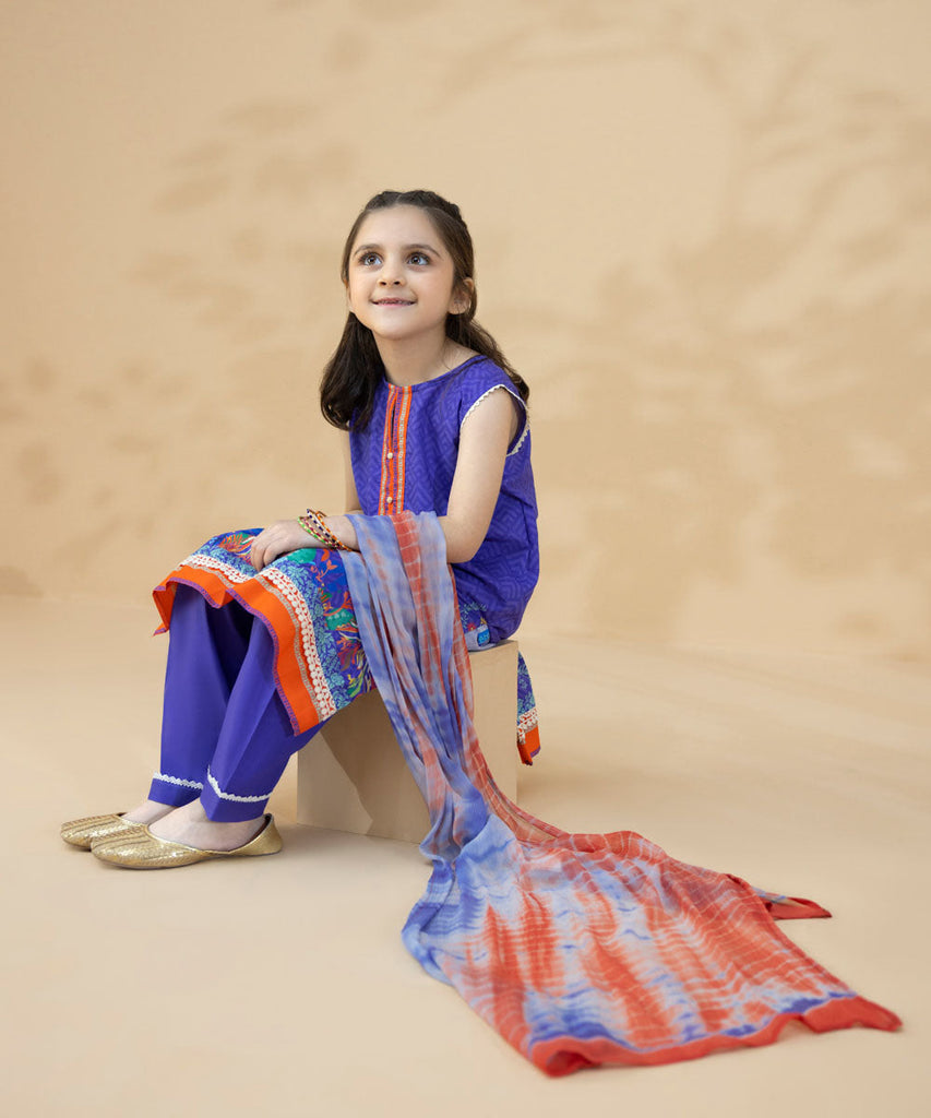 3 Piece - Printed Cambric SuitUplift your little one's look with this stunning straight kurta featuring stitching det...