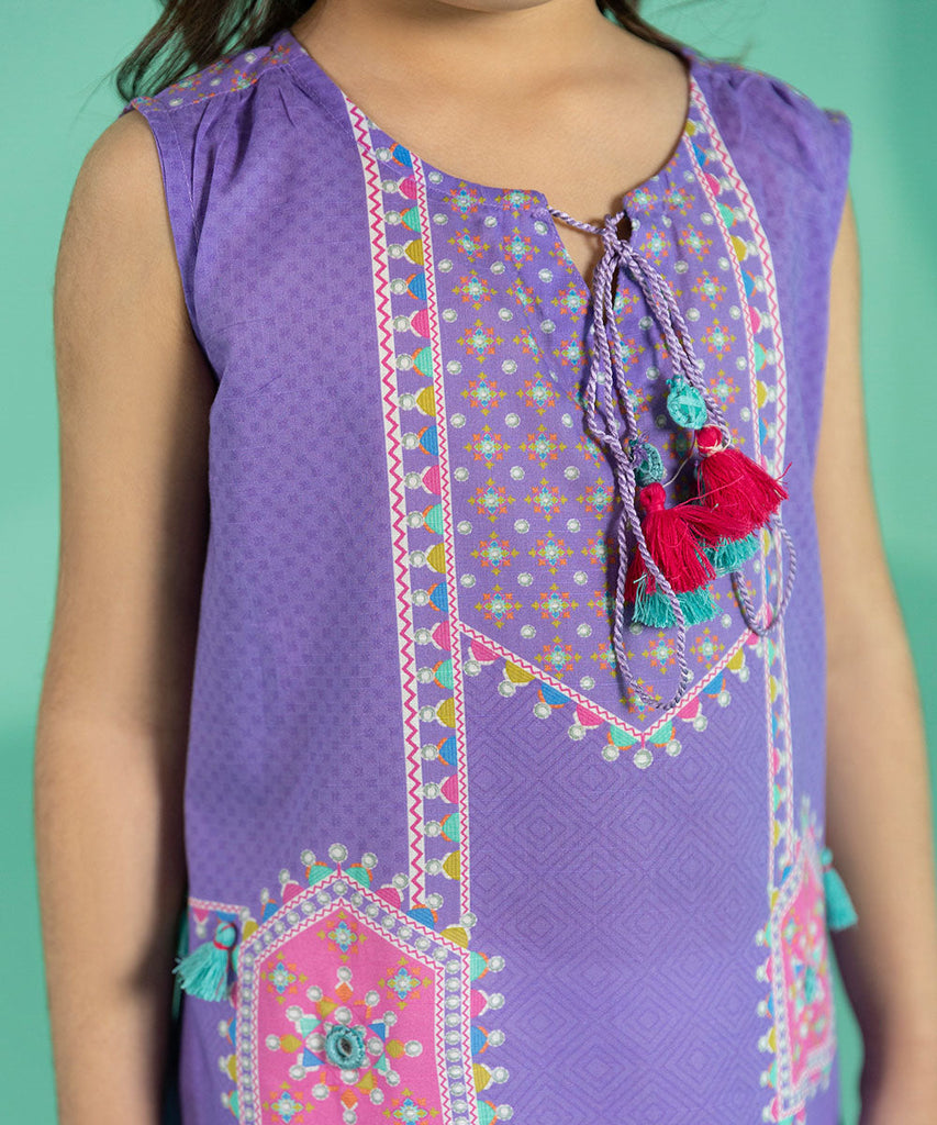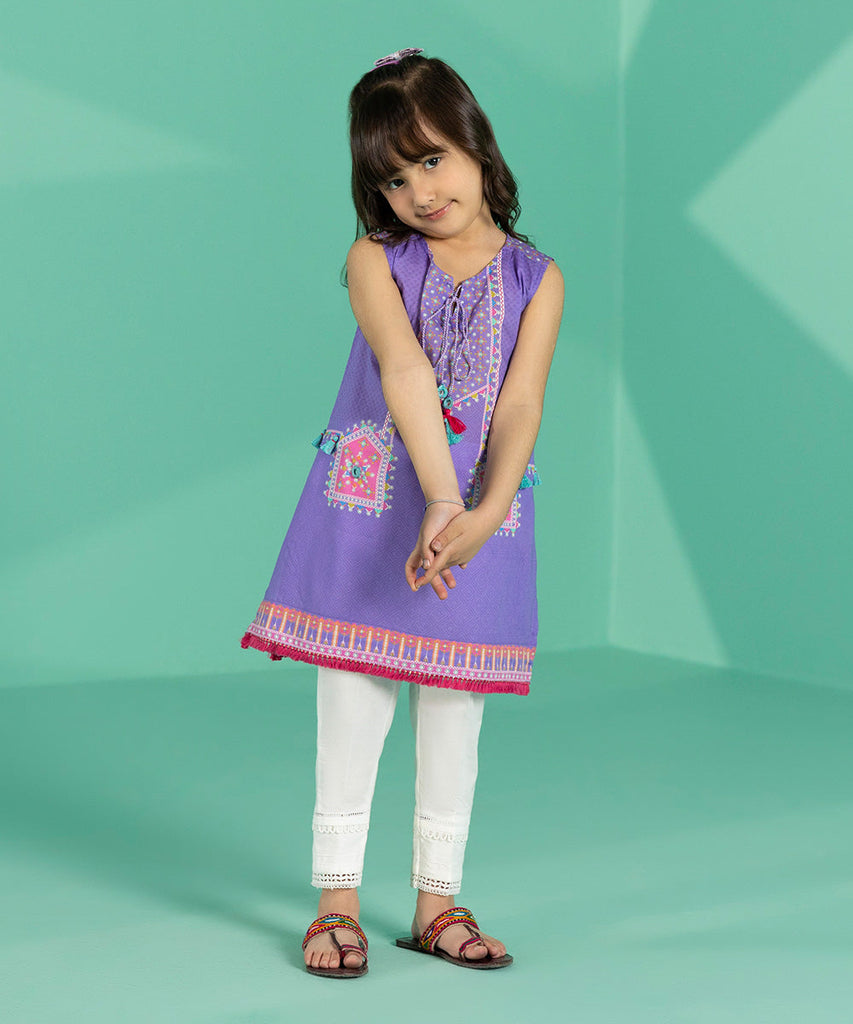 Dress your little one in lilac A-line silhouette featuring tassels and dori.