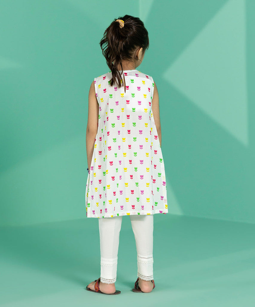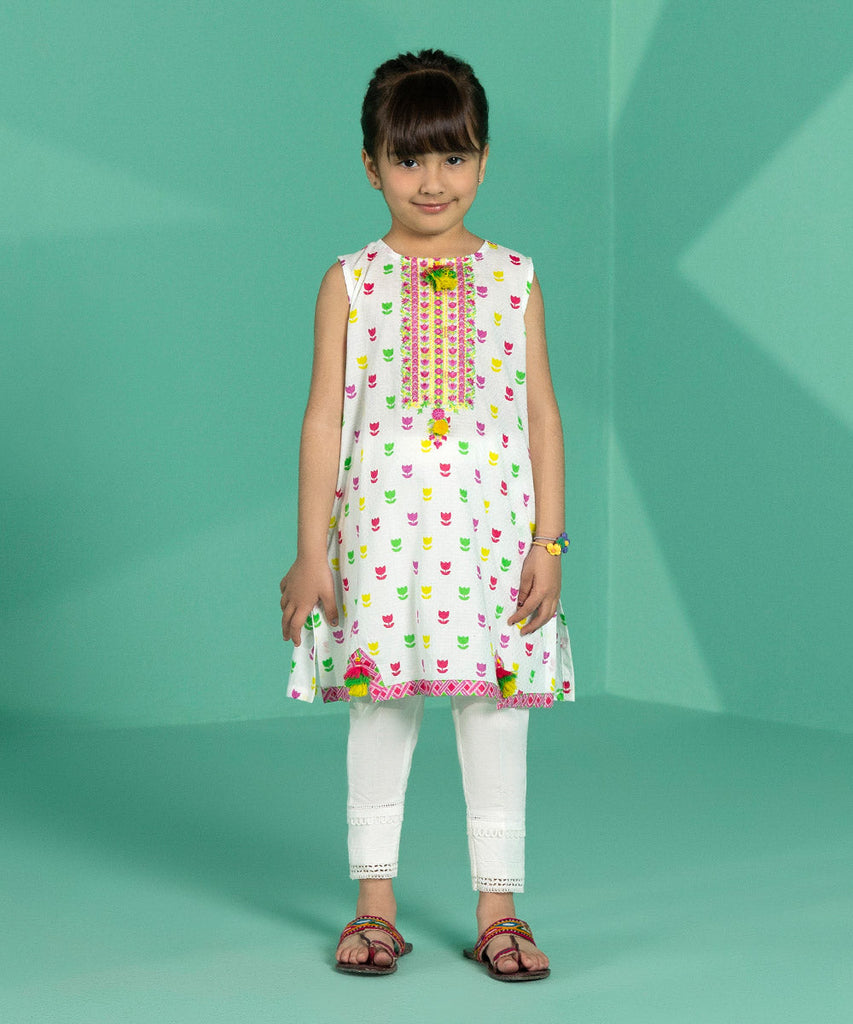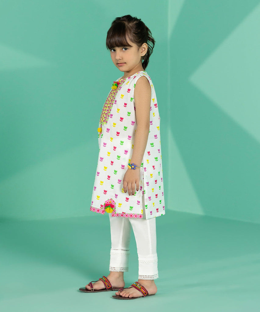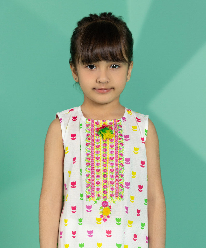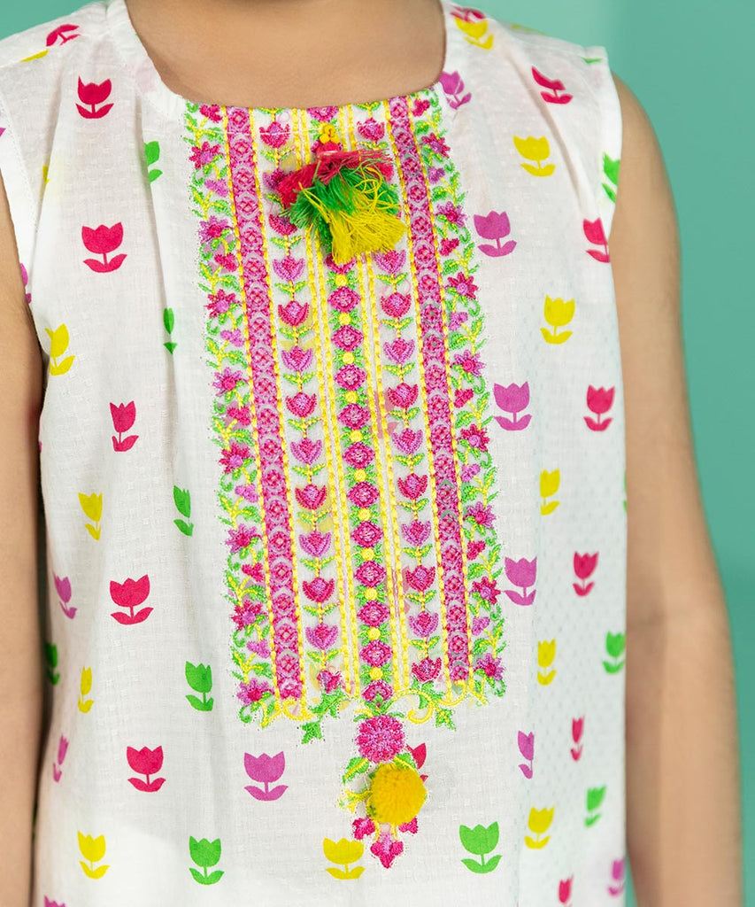For an angelic look don your princess in white dobby A-line shirt featuring embroidered neckline.