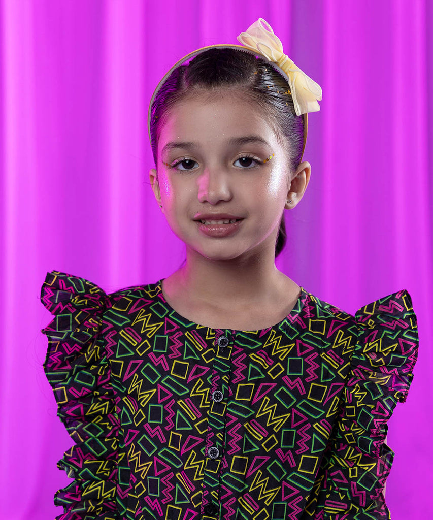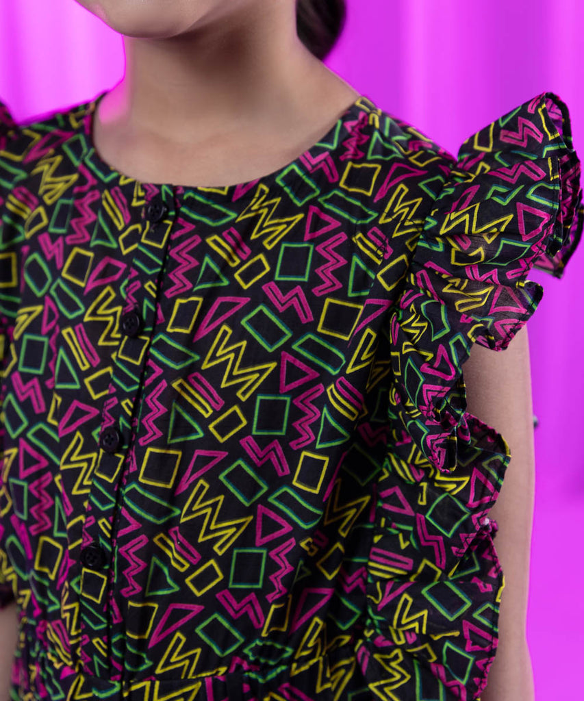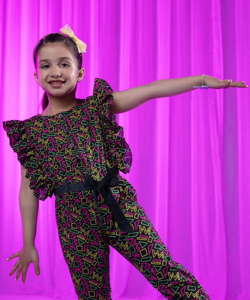 Let your little one shine in this black jumpsuit with frilled sleeves.