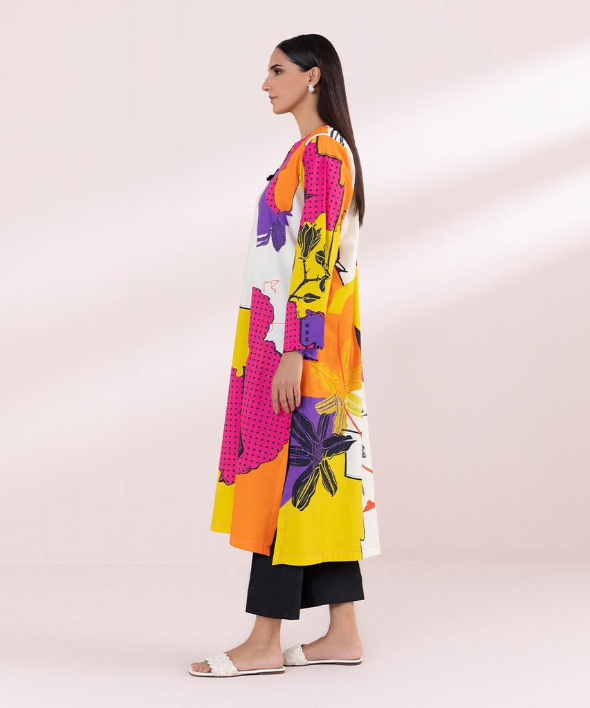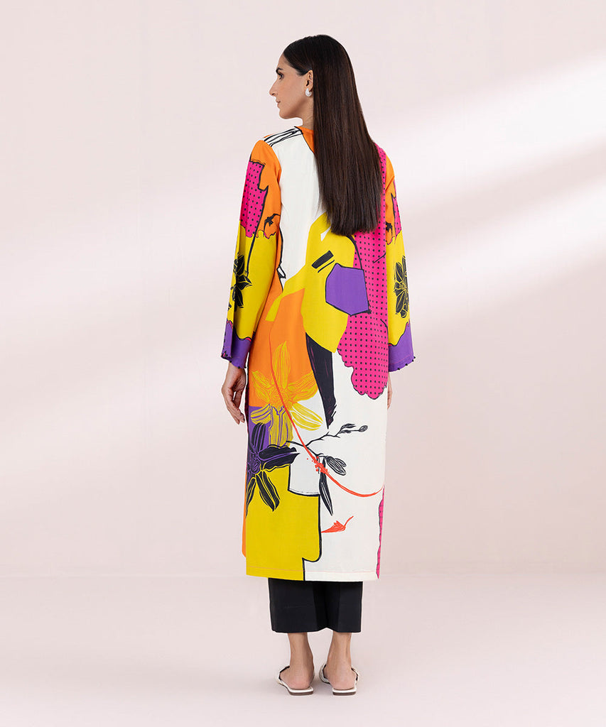 Straight KurtaCurate a playful summer look with our pink and orange, printed cotton viscose, long straight shirt. Det...
