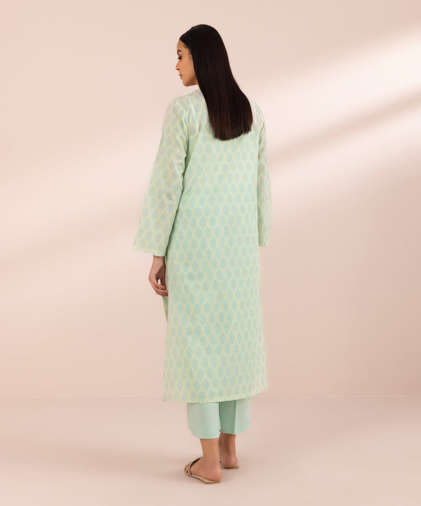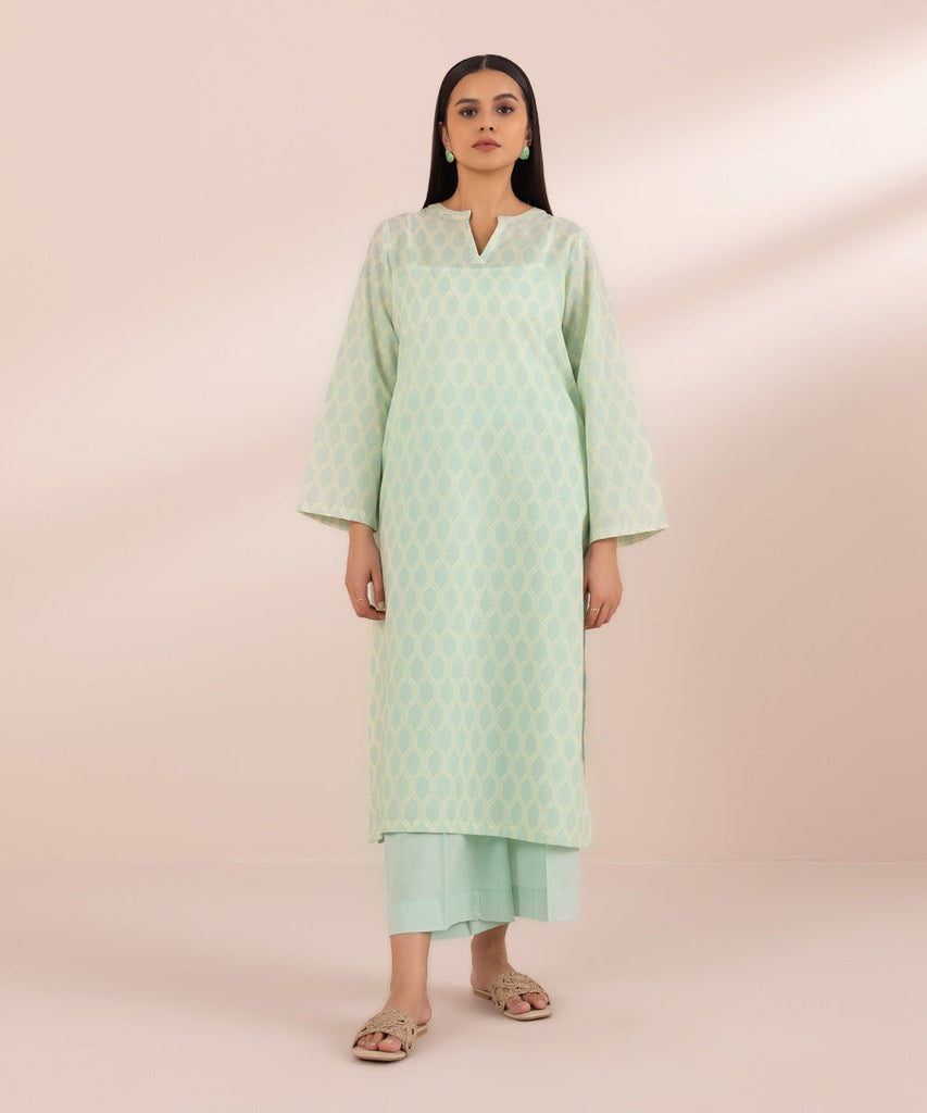 Printed Front, Printed Back, Full Sleeves, Band Neckline with a slit