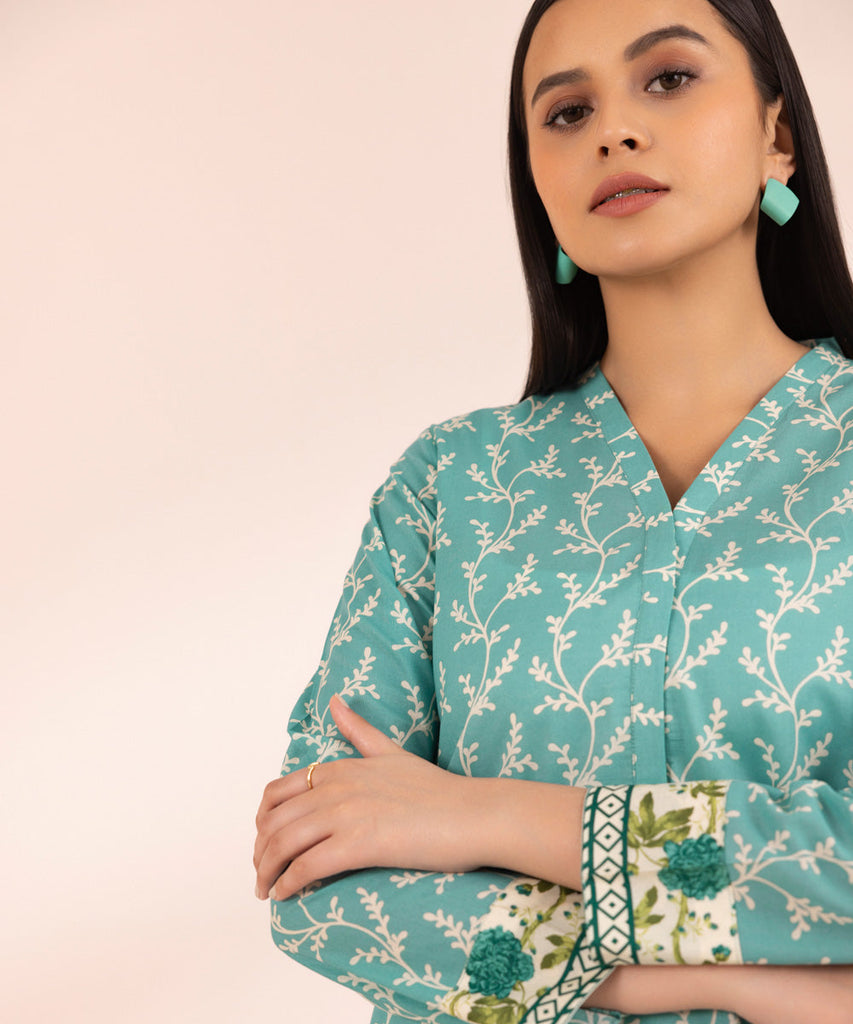 Elevate your summer style with our turquoise, straight printed shirt featuring a Y neckline.