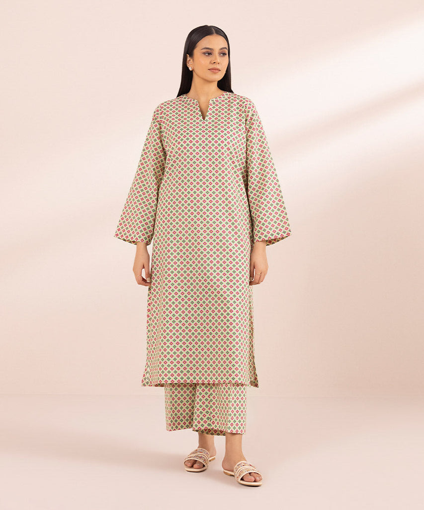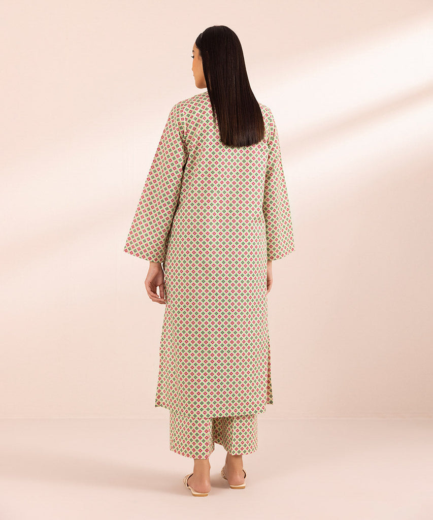 Printed Front, Printed Back, Full Sleeves, Band Neckline with a slit