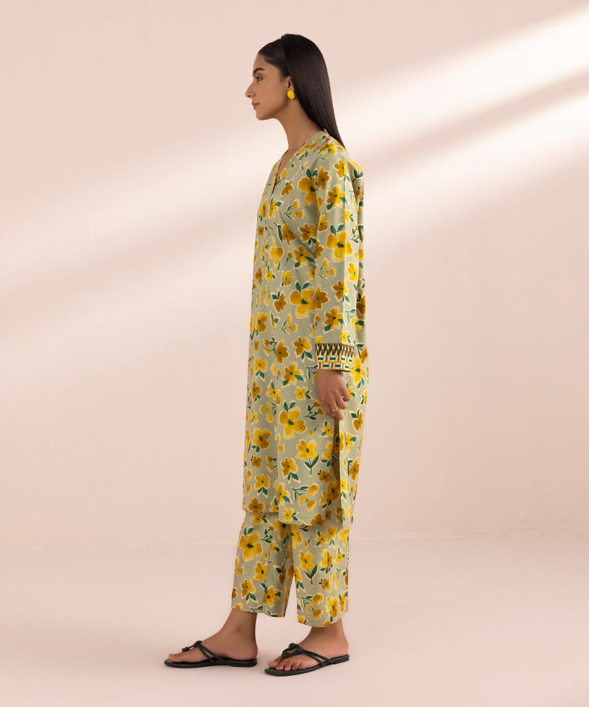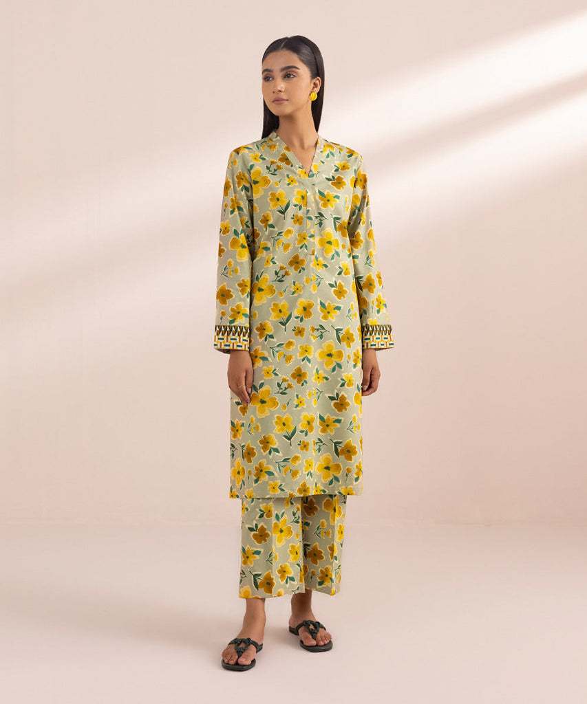 Elevate your summer style with our dull pistachio green, straight printed shirt featuring a Y neckline.