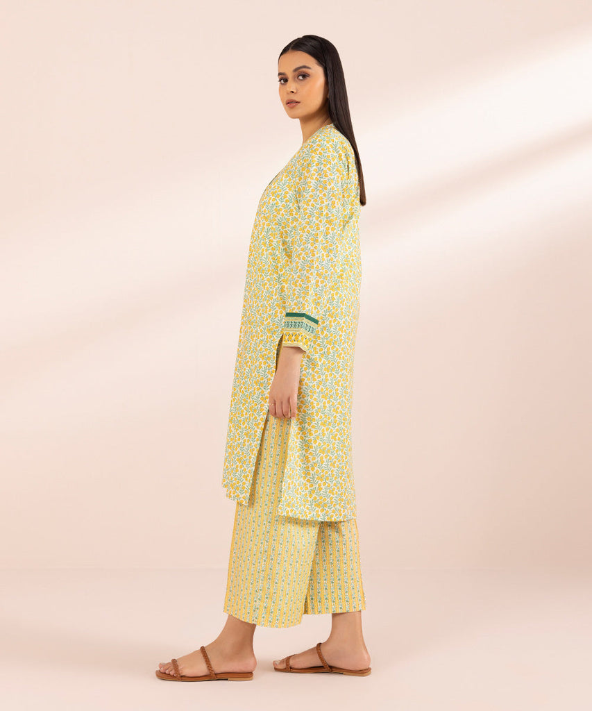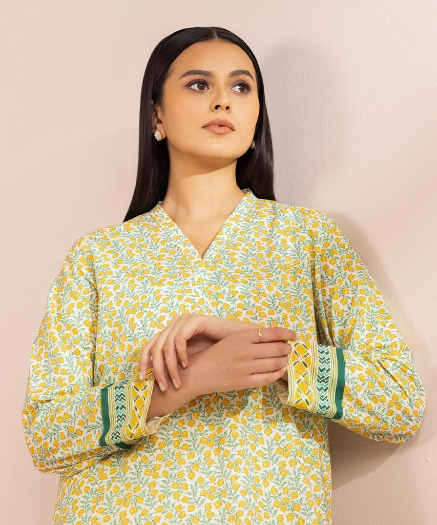 Straight KurtaStandout with your summer style in our yellow and white, printed shirt featuring a Y neckline.