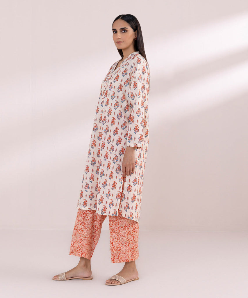 Straight KurtaStandout with your summer style in our beige, printed lawn shirt featuring a Y-neckline.