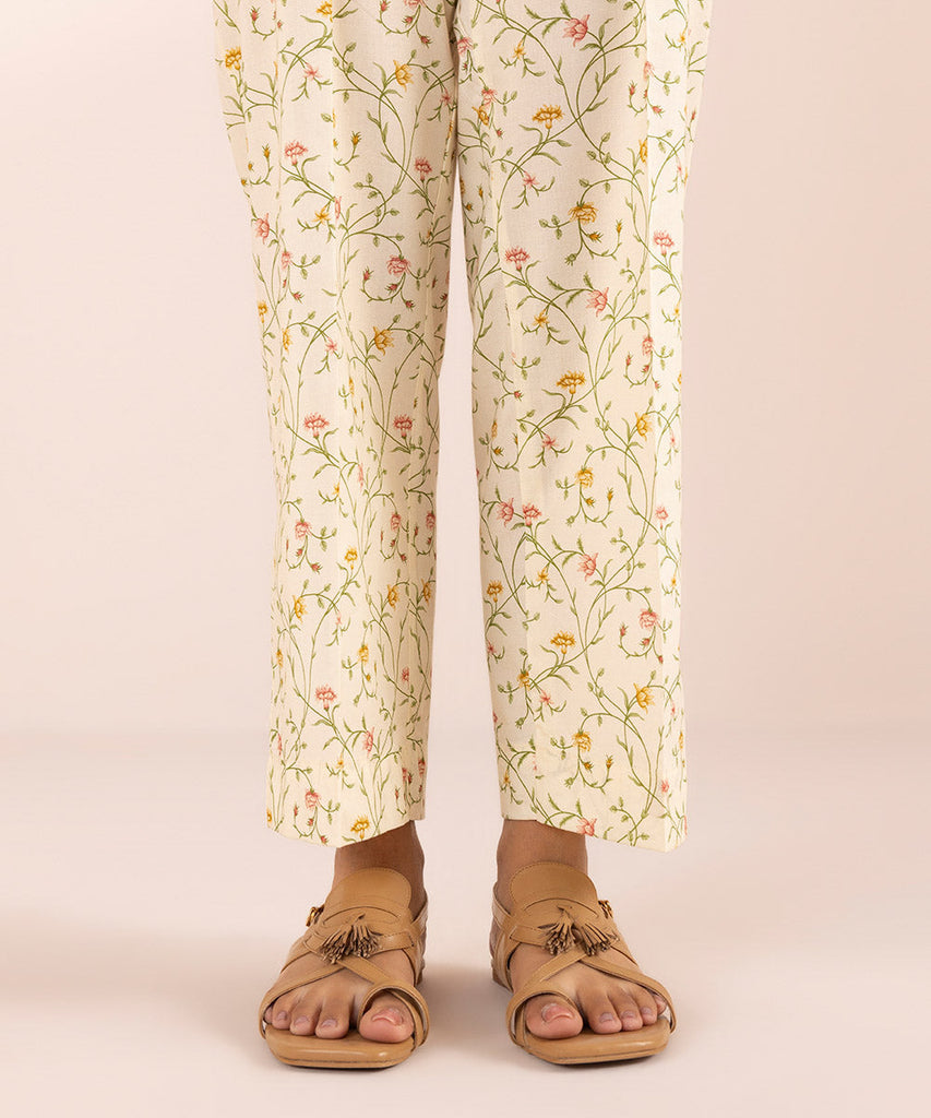 Complete your outfit with our cream white Cambric printed straight pants. Straight PantsColour: Cream WhiteFabric: Ca...