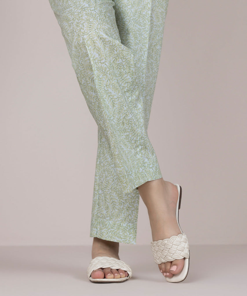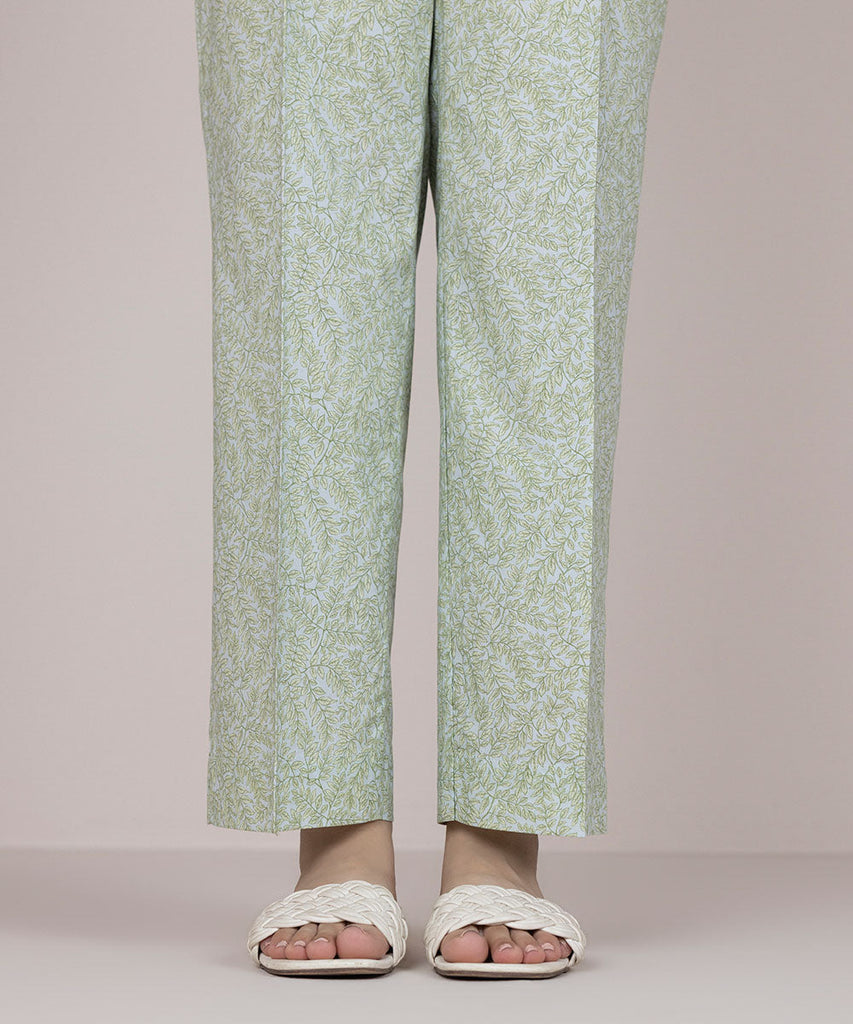 Complete your outfit with our pastel blue printed Cambric straight pants.