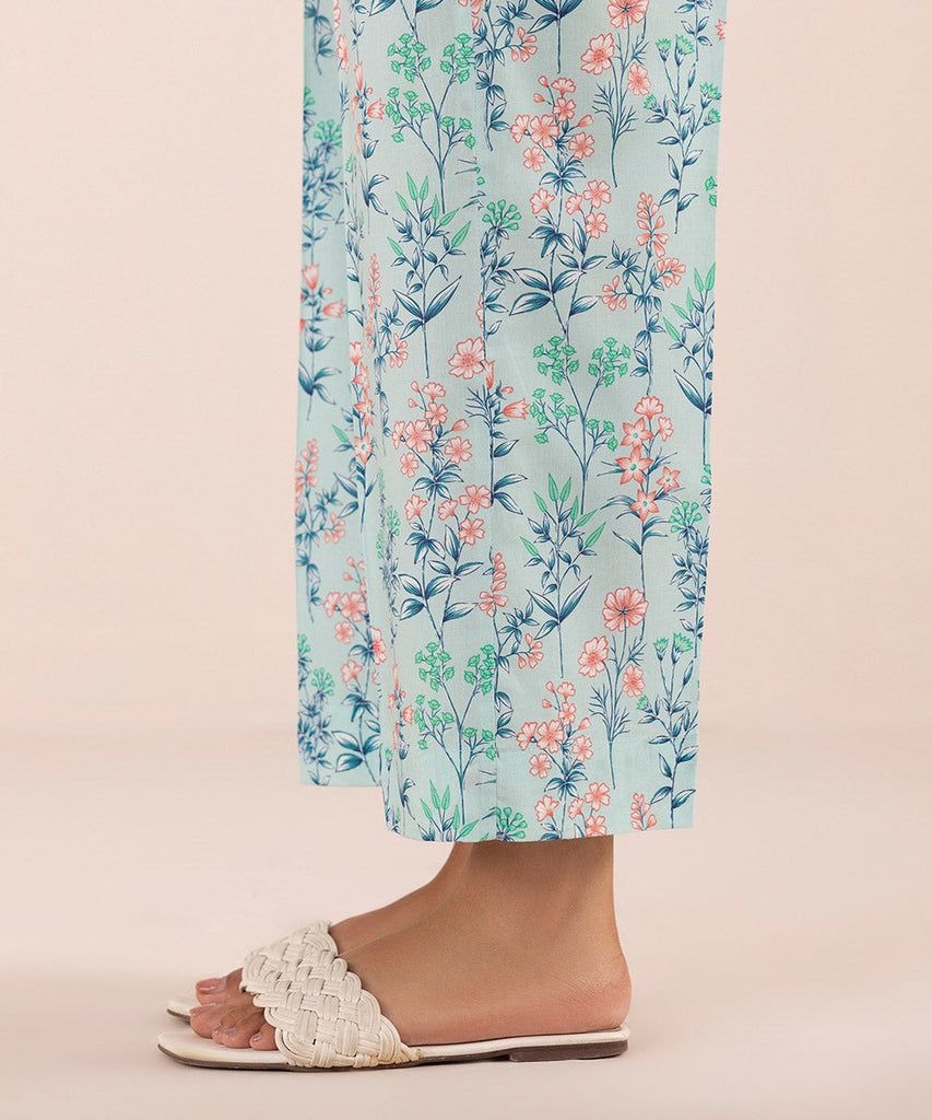 Elevate your summer style with our sky blue Cambric printed straight pants.