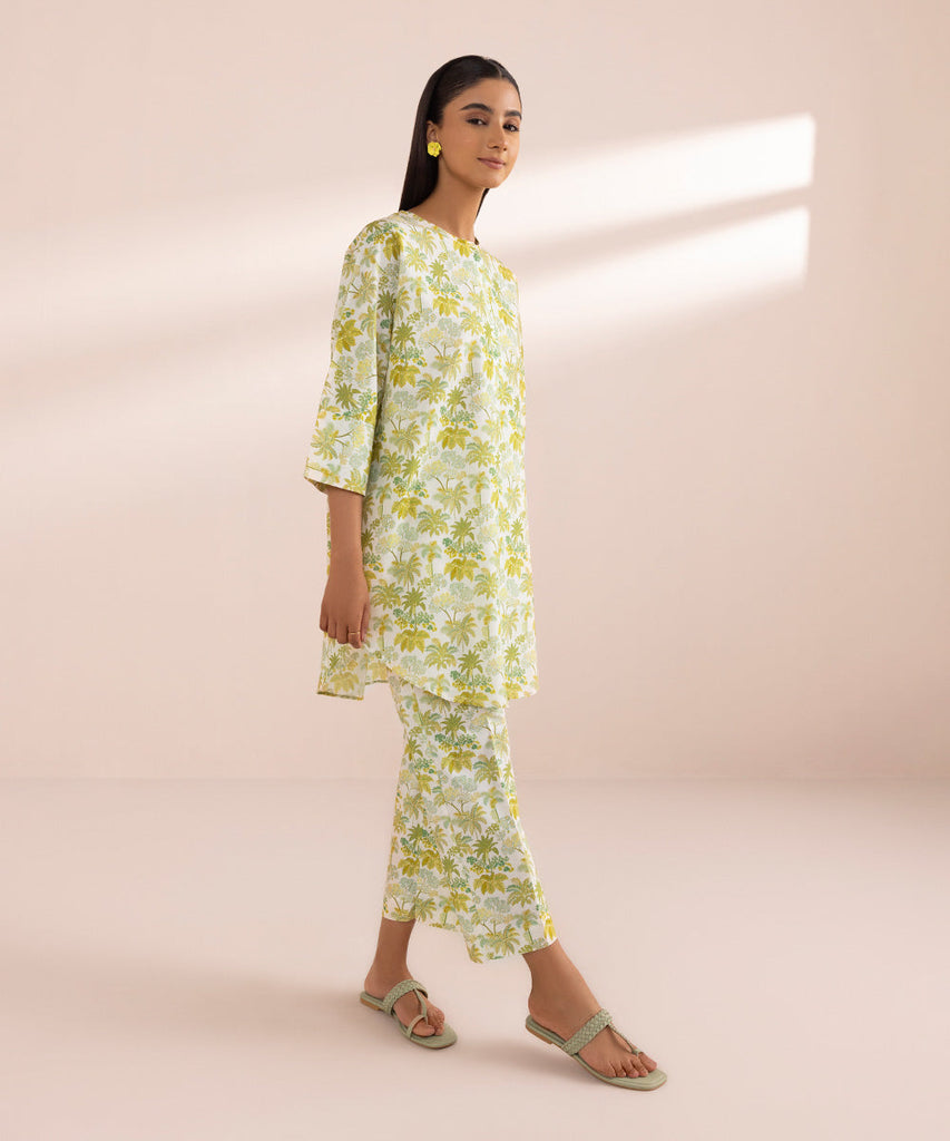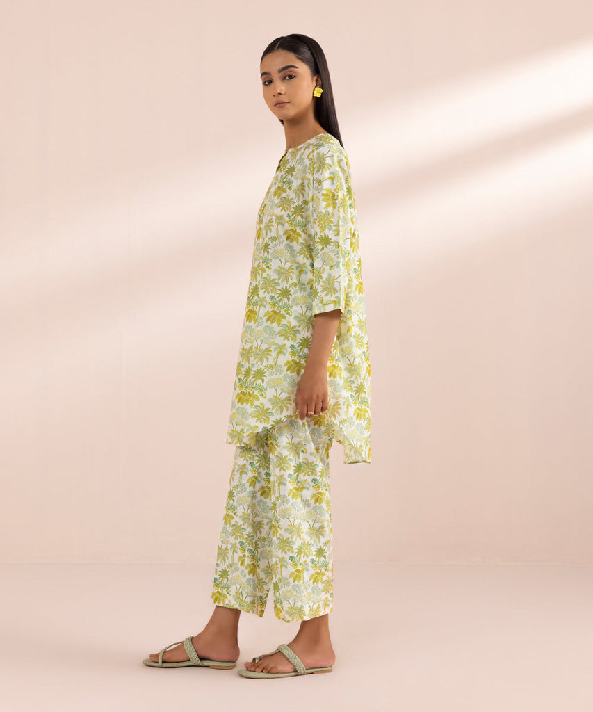 Drop Shoulder ShirtElevate your summer style with our green and off-white, printed drop shoulder shirt featuring a ro...