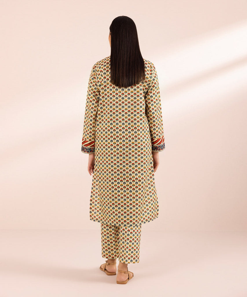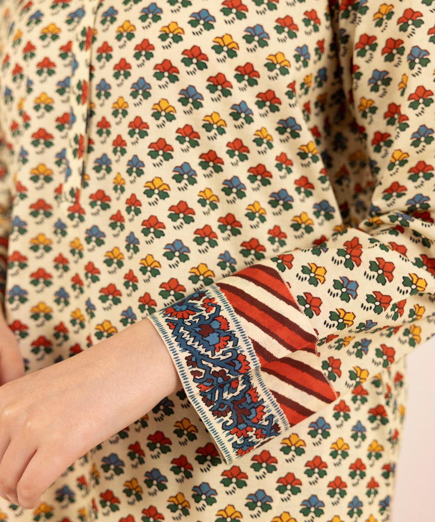 Straight KurtaStandout with your summer style in our beige printed shirt featuring a Y neckline.