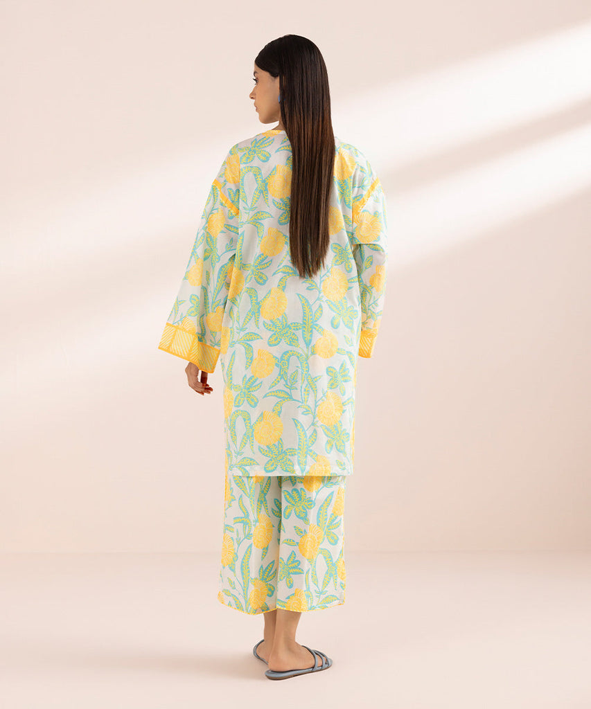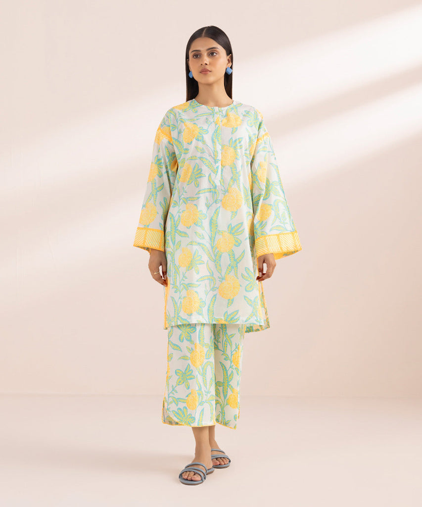 Printed Front, Printed Back, Full Sleeves, Round Neckline with a placket