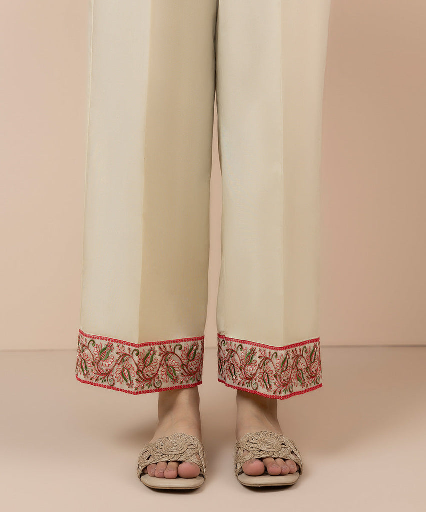 Complete your look with our cream-white, embroidered dyed culottes. CulottesColour: Cream WhiteFabric: Cambric SIZE &...