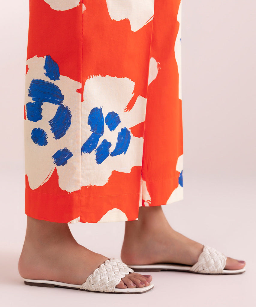 Complete your outfit with our bright orange printed cambric culottes.