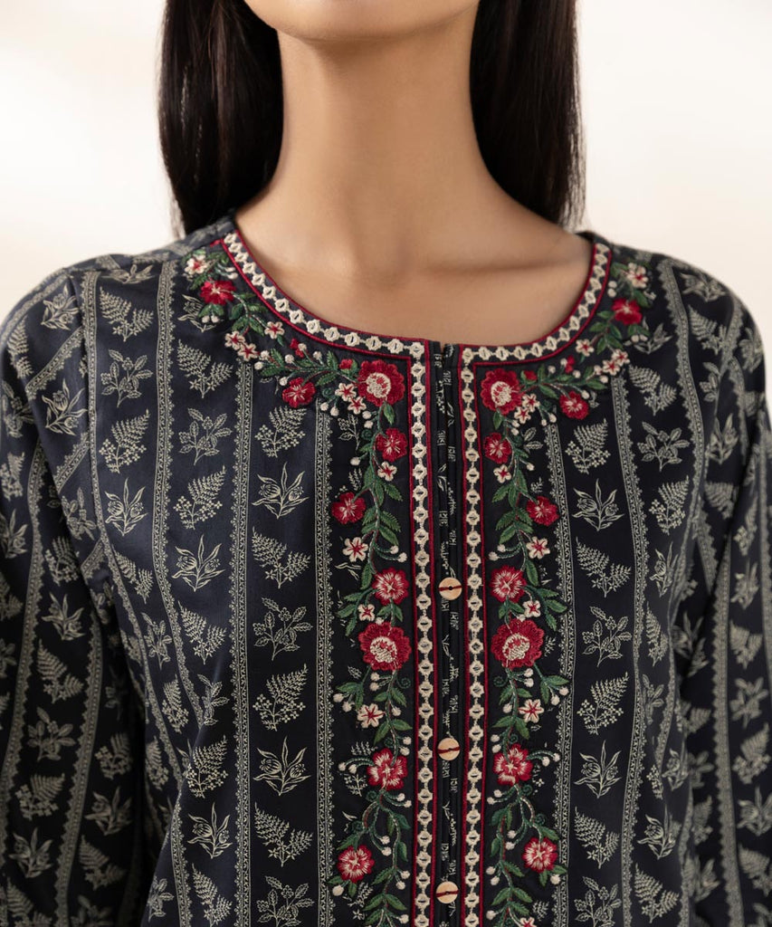 Printed Front with Embroidery, Printed Back with Embroidery, Full Sleeves, Round Neckline with a slit